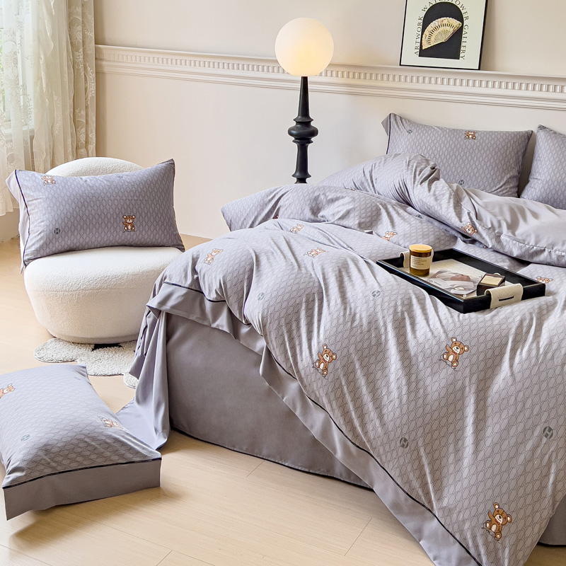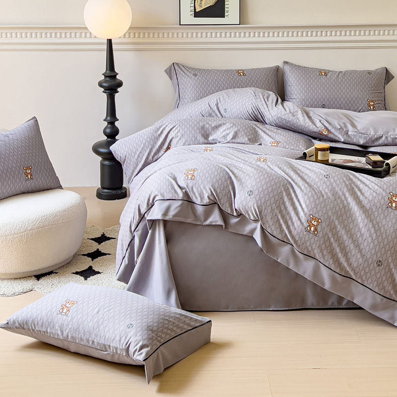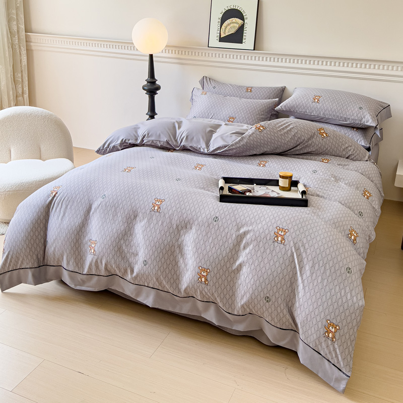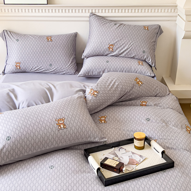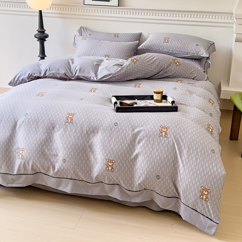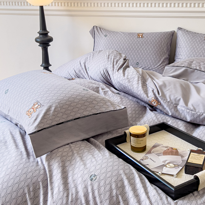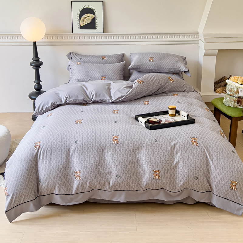 棉生活 2023新款云绒棉印花宽边四件套 大牌熊