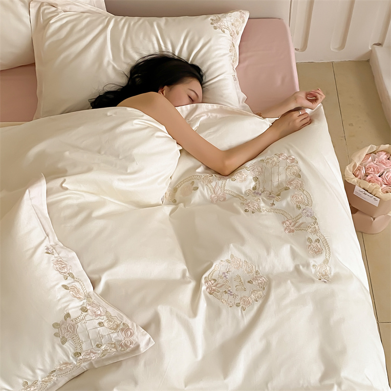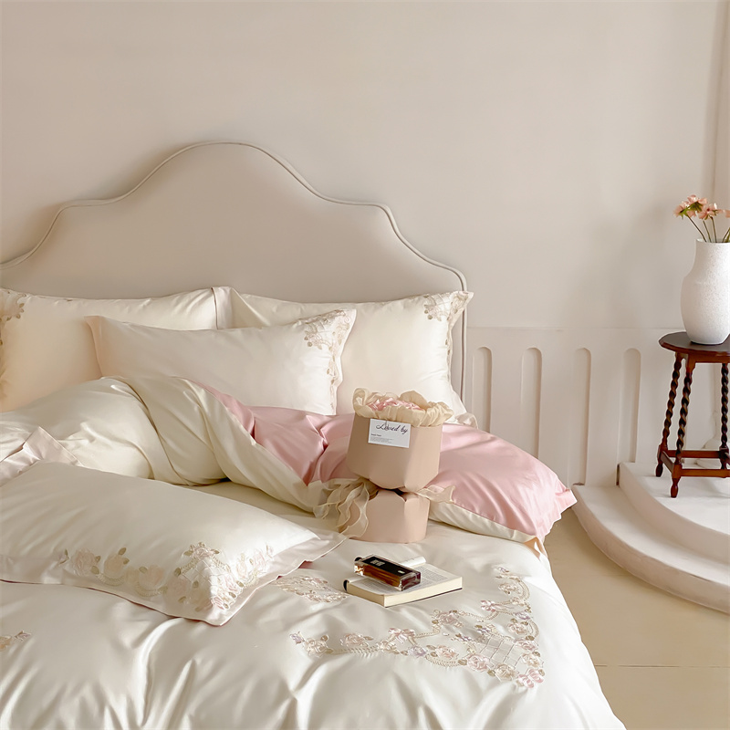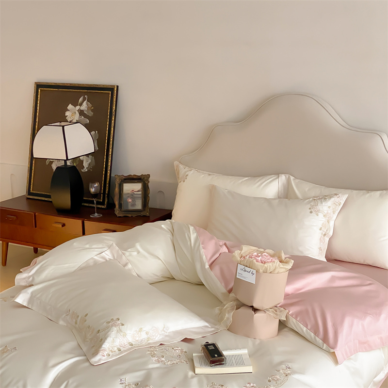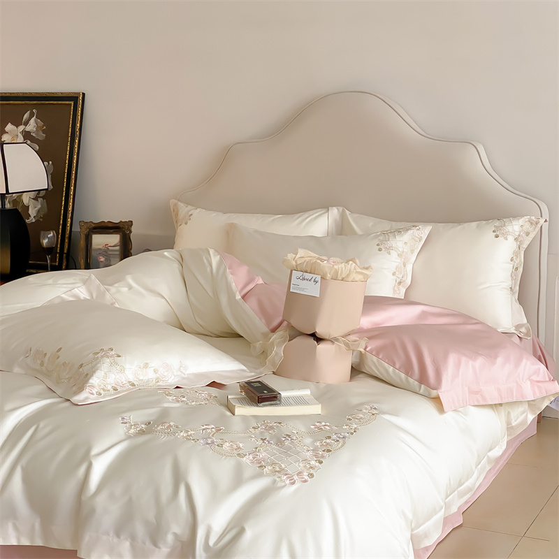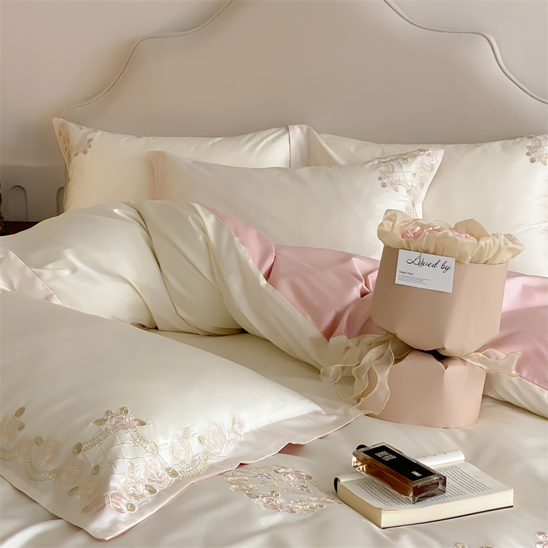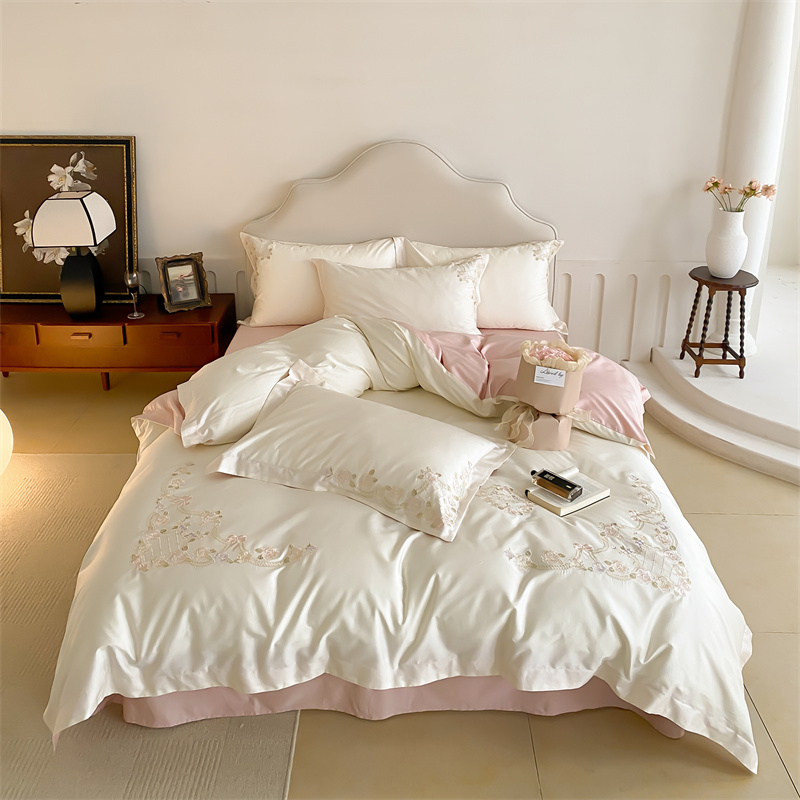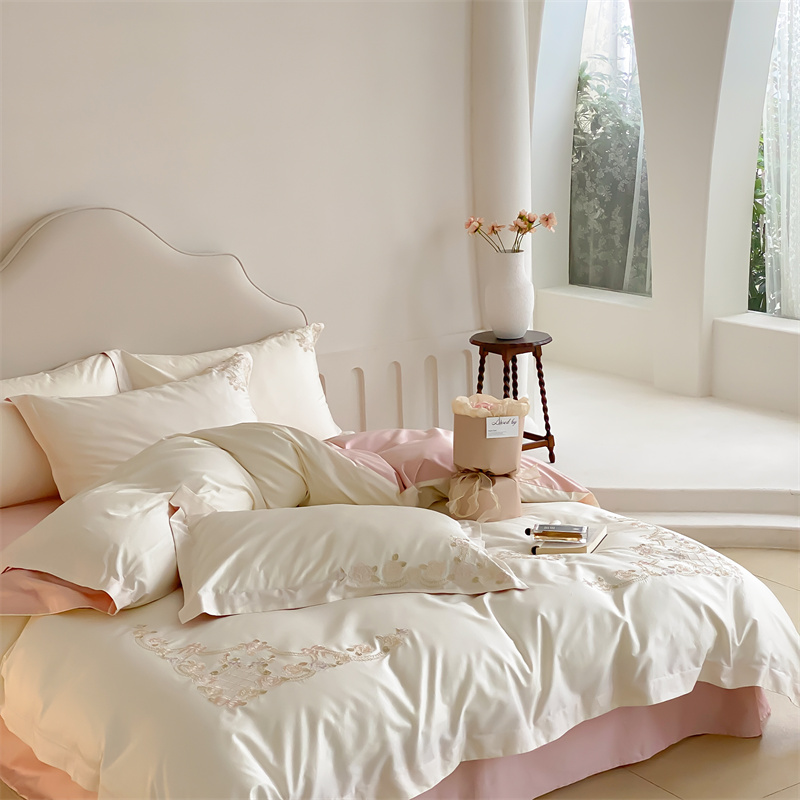 馨蕊家居 2023新款100支CR工艺全棉四件套-棉卡洛琳 卡洛琳-粉白