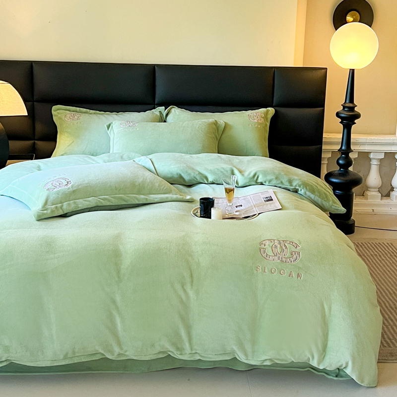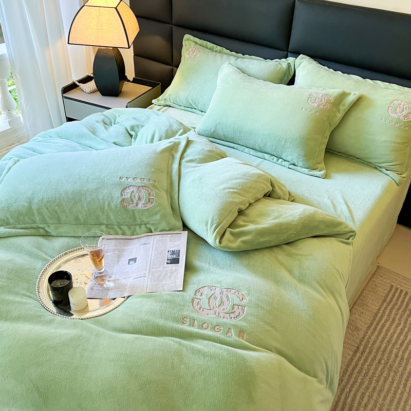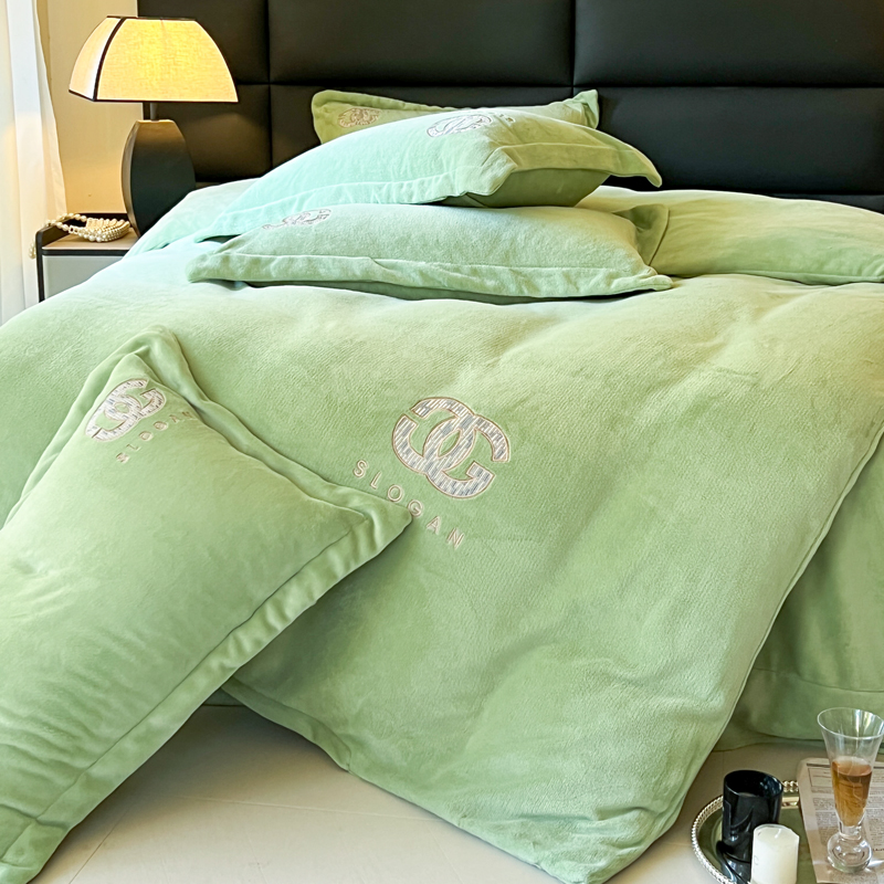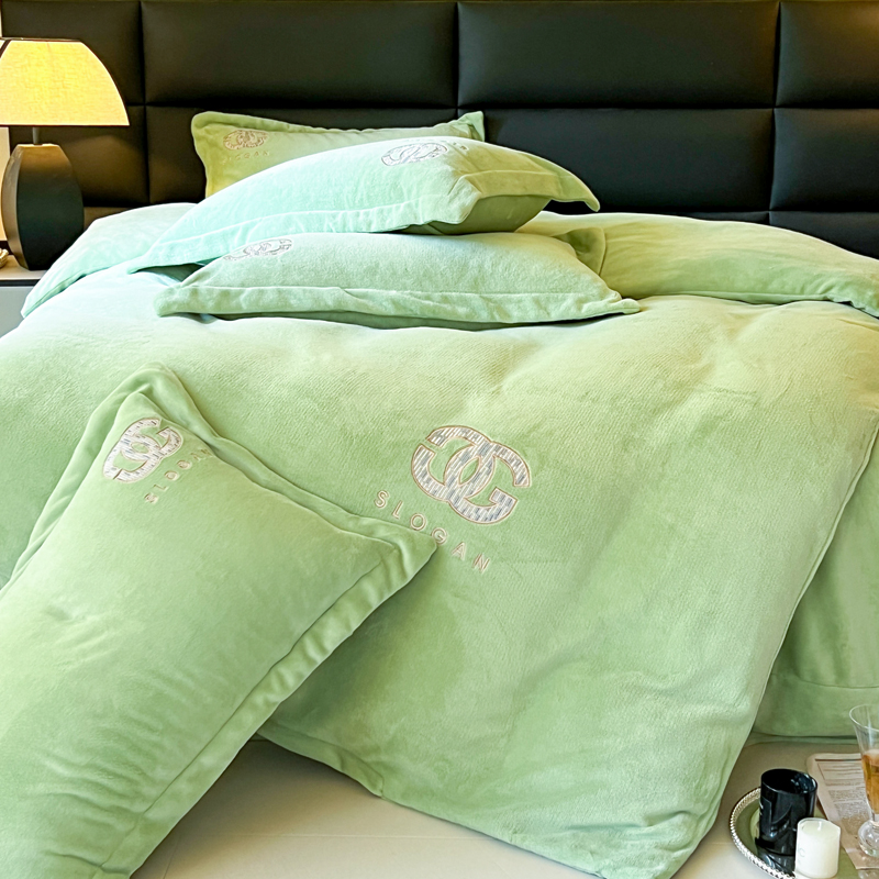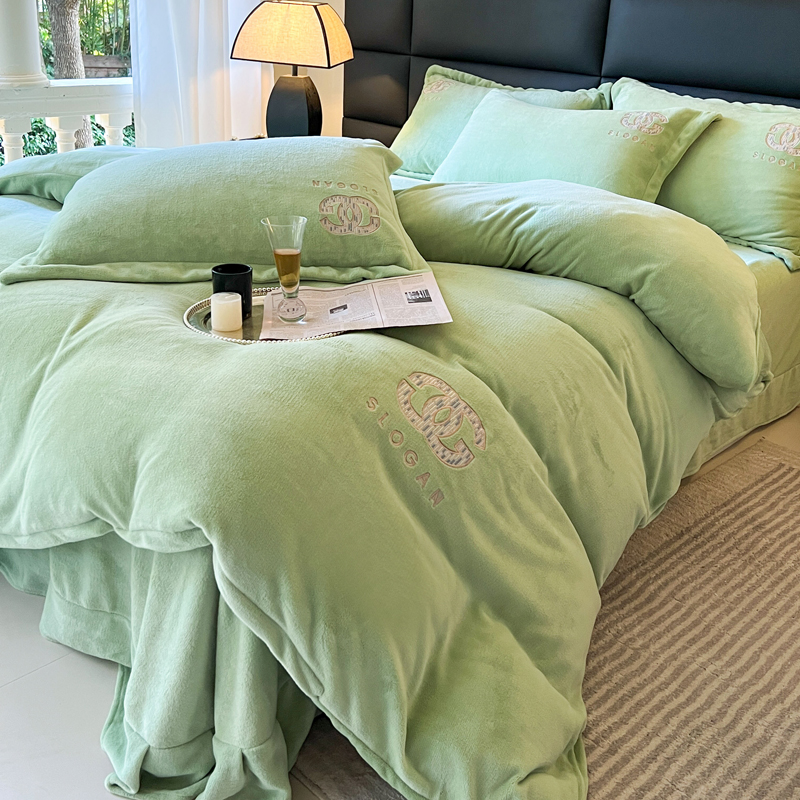 仟网汇 2023新款牛奶绒刺绣轻奢小香风系列婴儿绒四件套 小香风-绿色