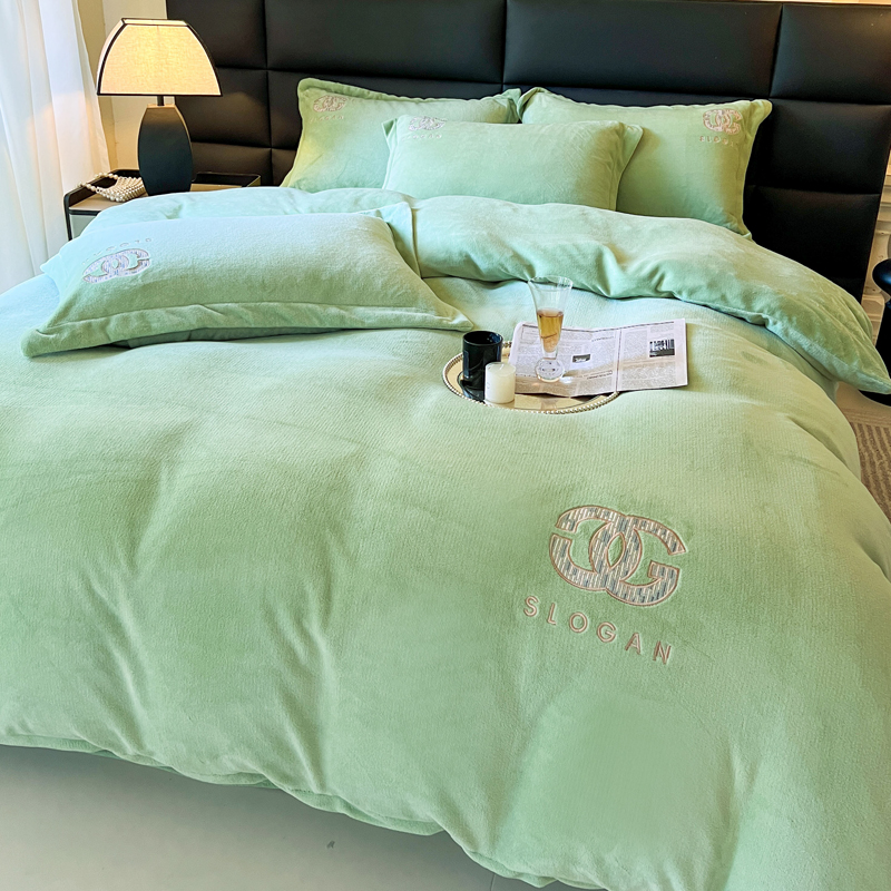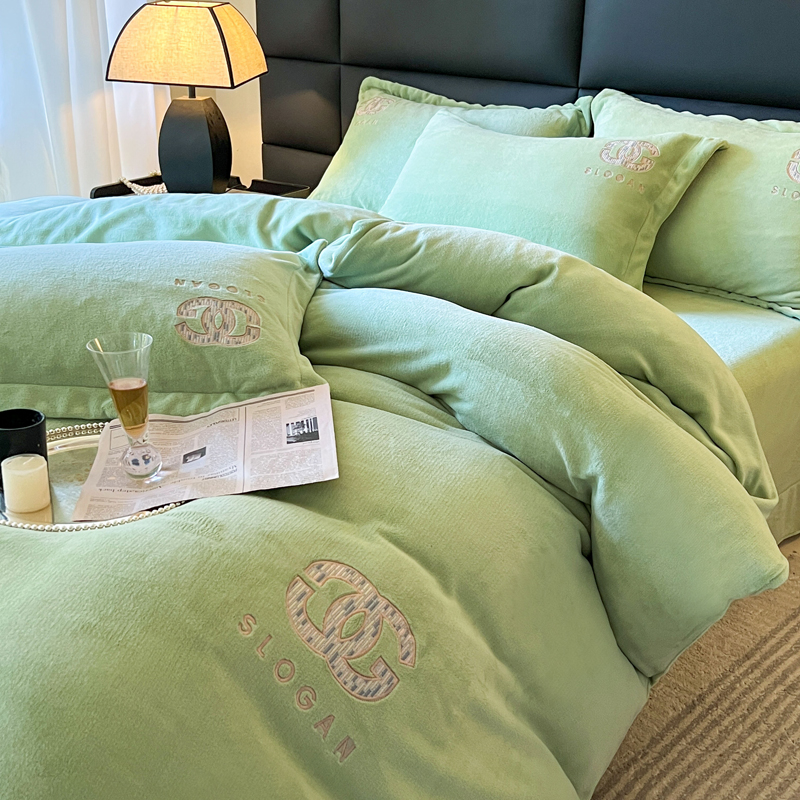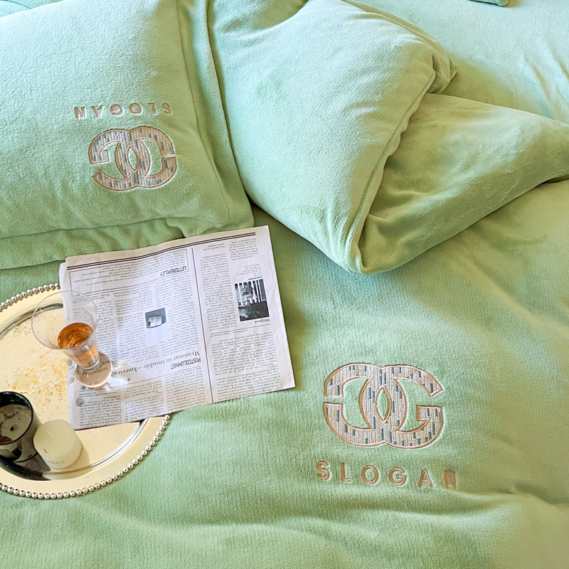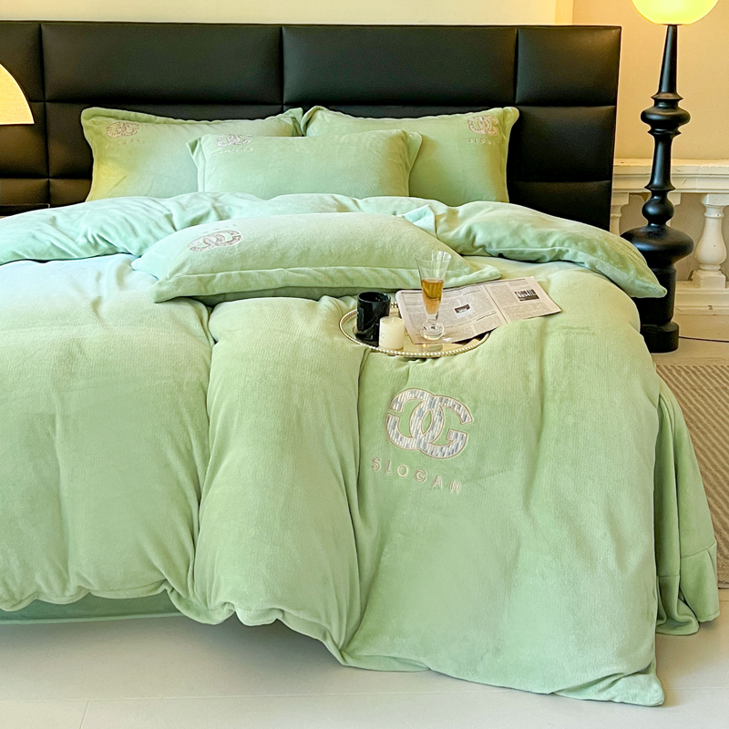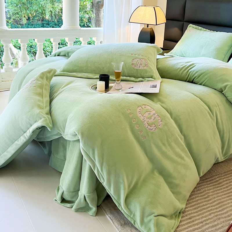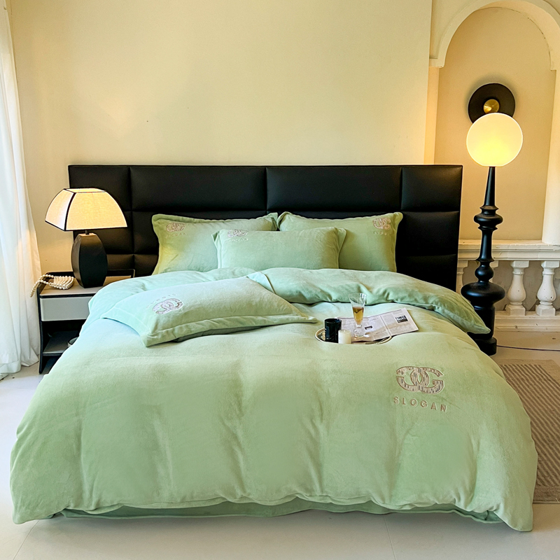 仟网汇 2023新款牛奶绒刺绣轻奢小香风系列婴儿绒四件套 小香风-绿色
