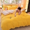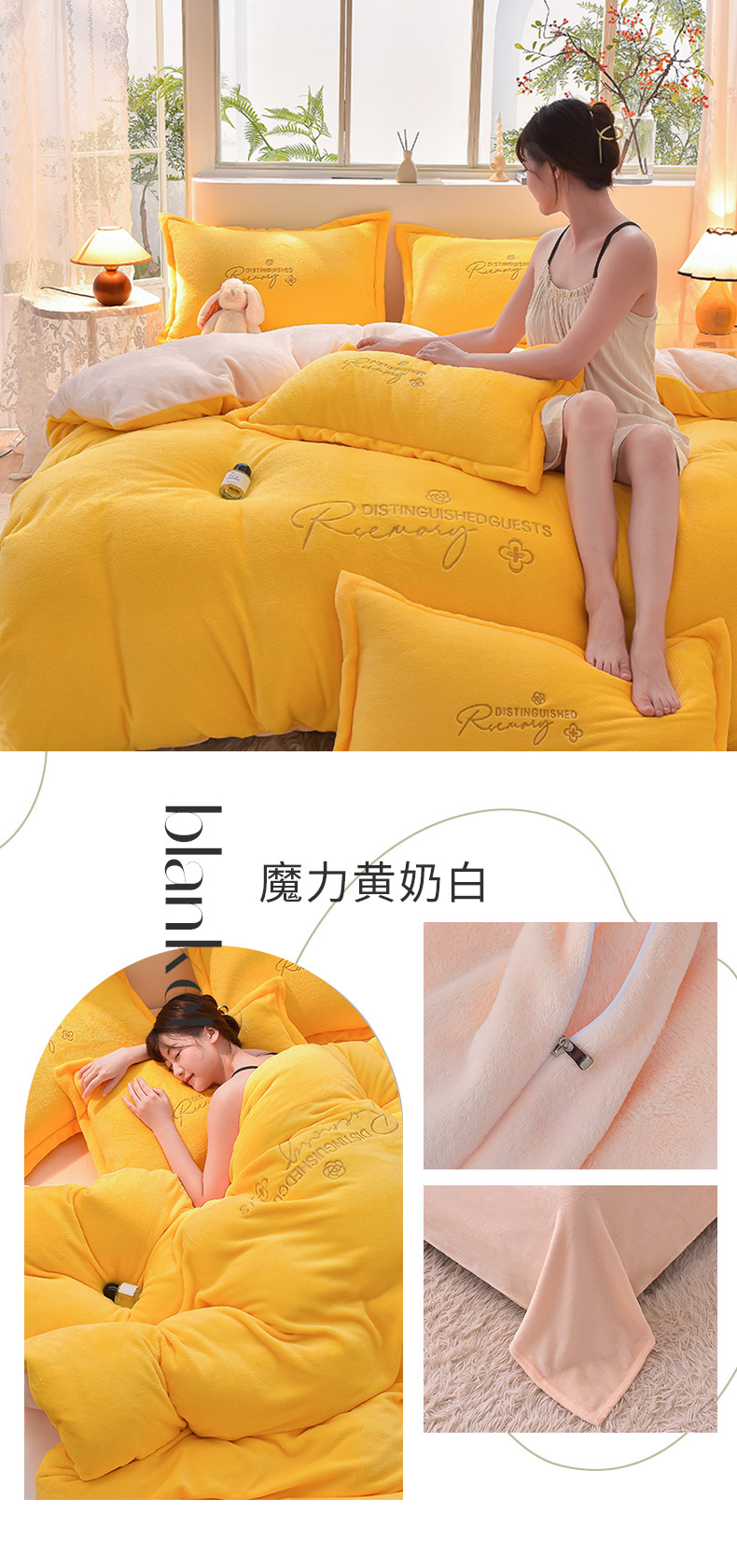 简爱家纺2025新款保暖MISS款法莱绒刺绣四件套魔力黄奶白