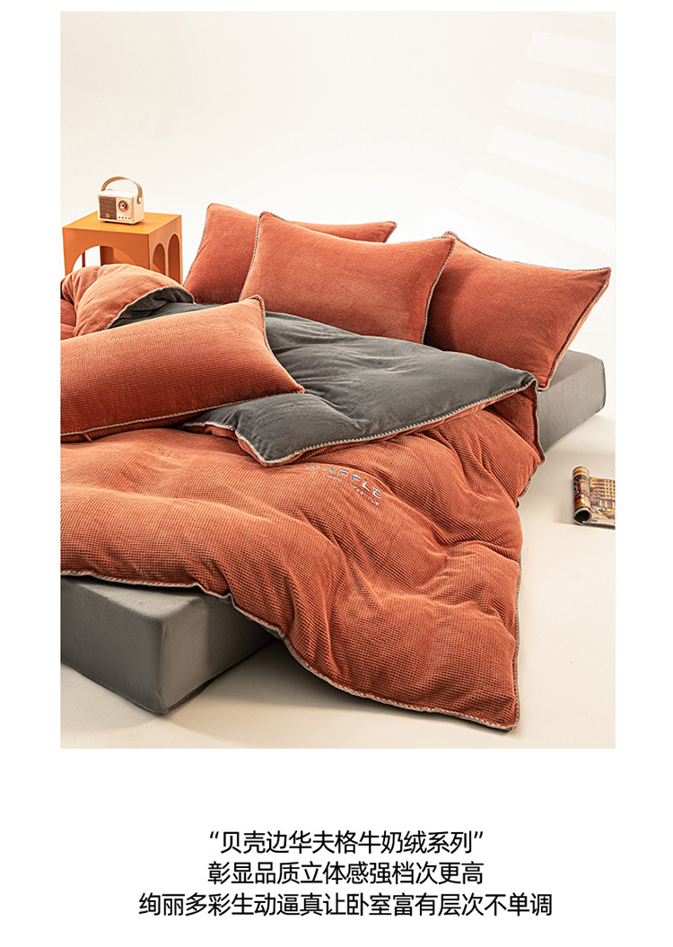 当前位置: 91家纺网 > 商品网购 > 床品套件 > 四件套 > 牛奶绒四件套 > 吾诺2023秋冬贝壳边华夫格牛奶绒四件套-纯净版拍摄风格 焦糖咖-深灰