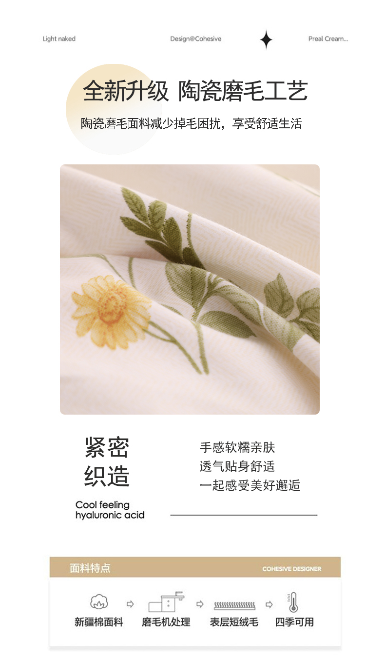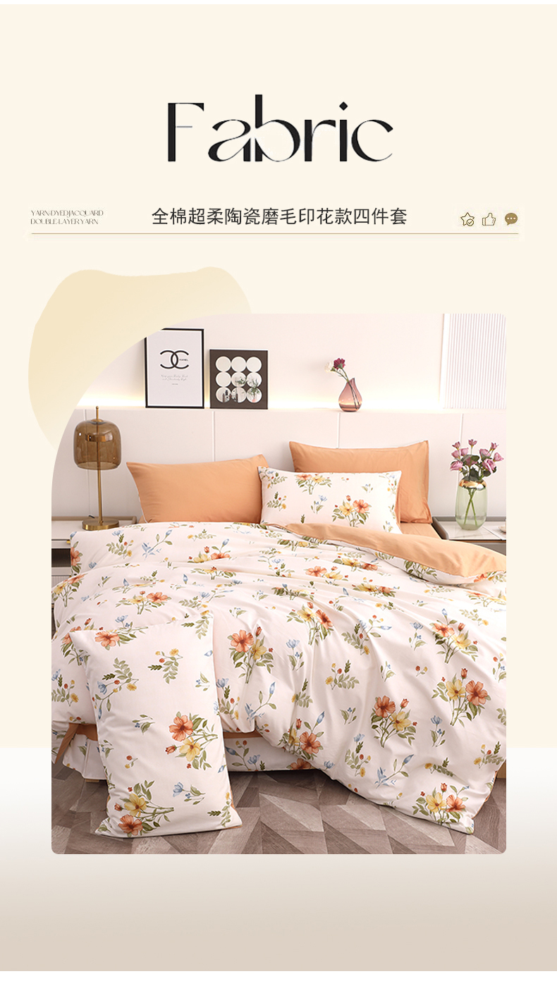 爱思佳 2023新款全棉超柔陶瓷磨毛系列四件套 静淑