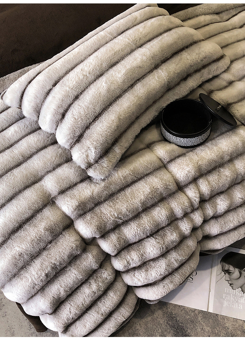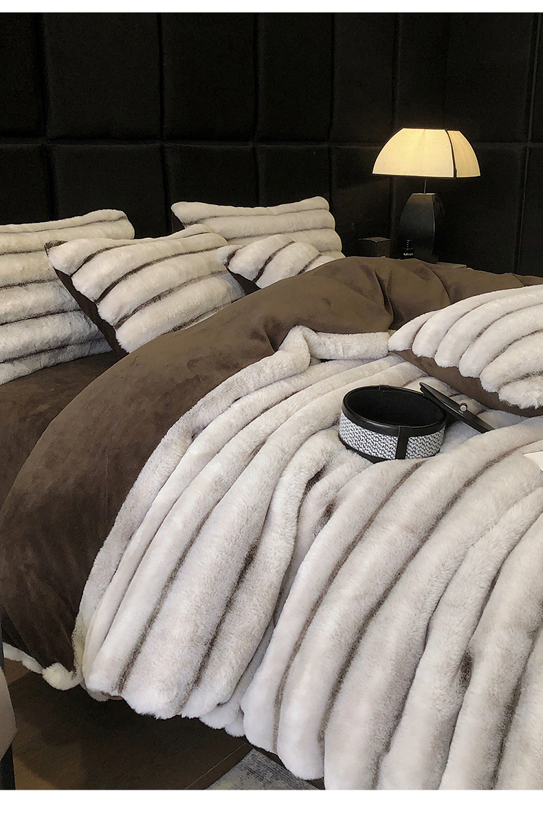 罗优家纺 2025新款条纹兔兔绒四件套 棕灰