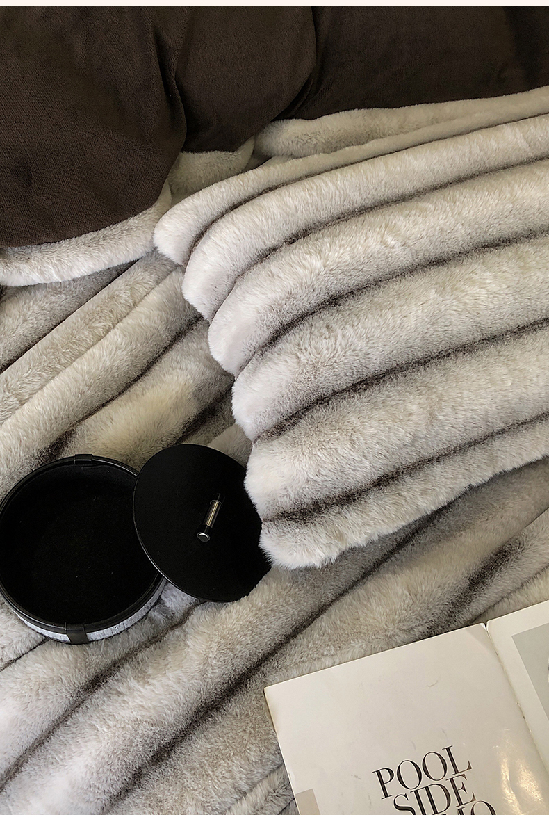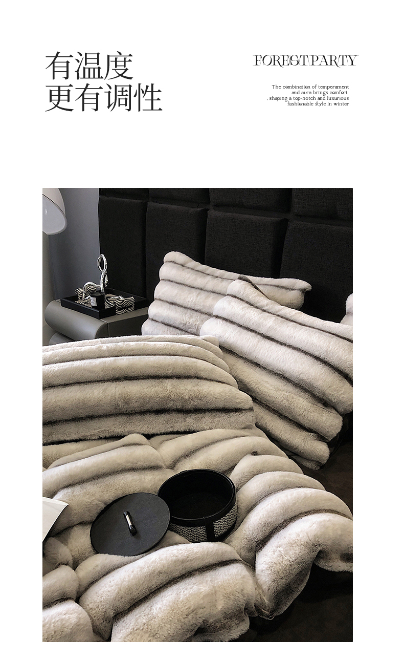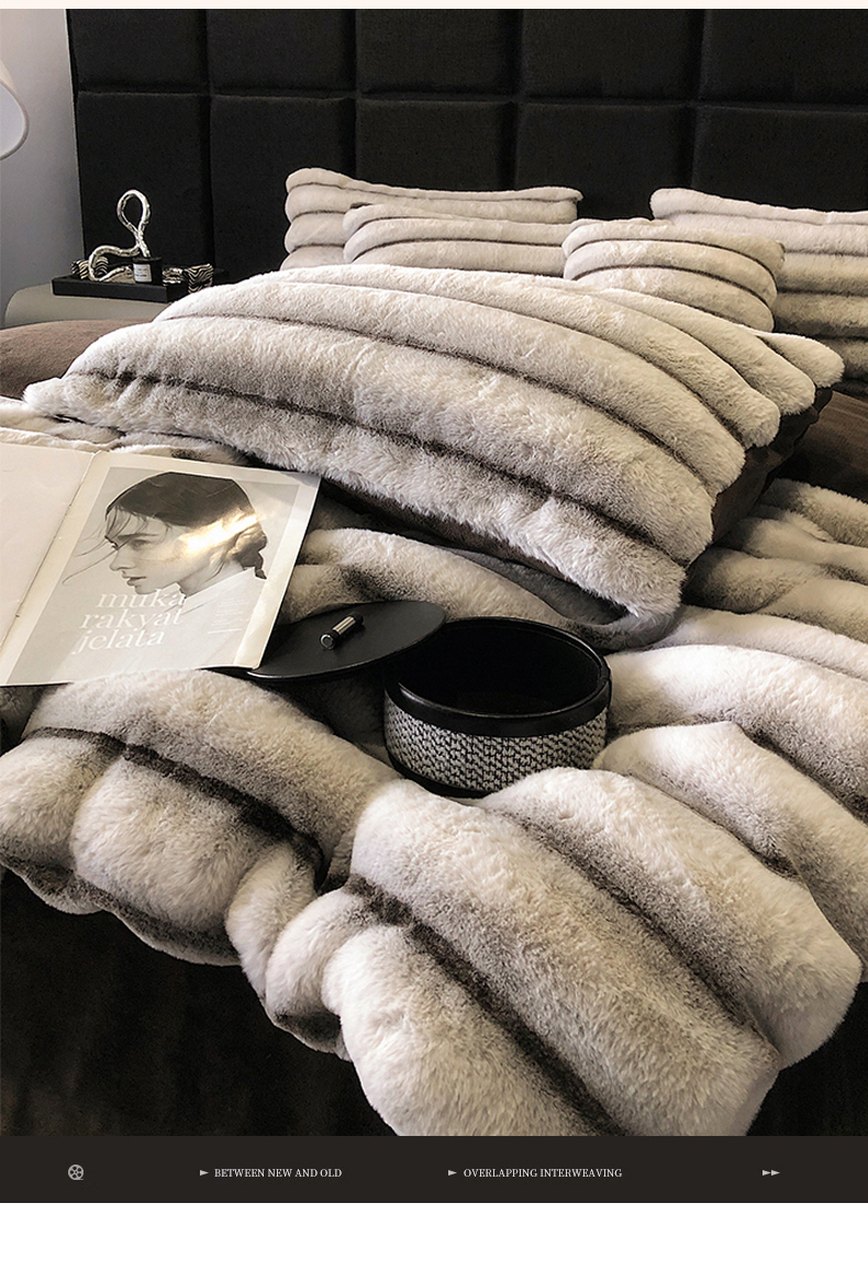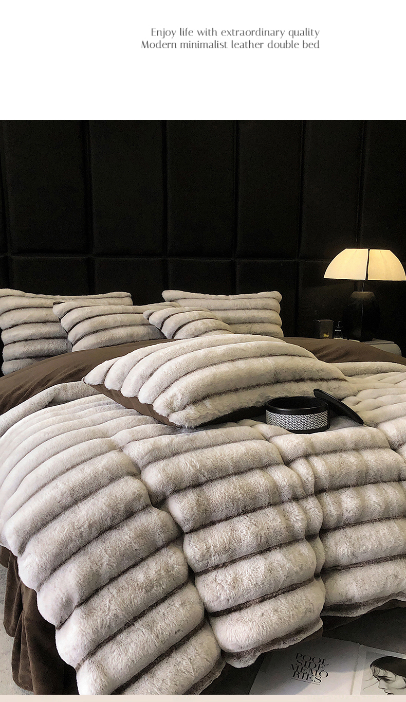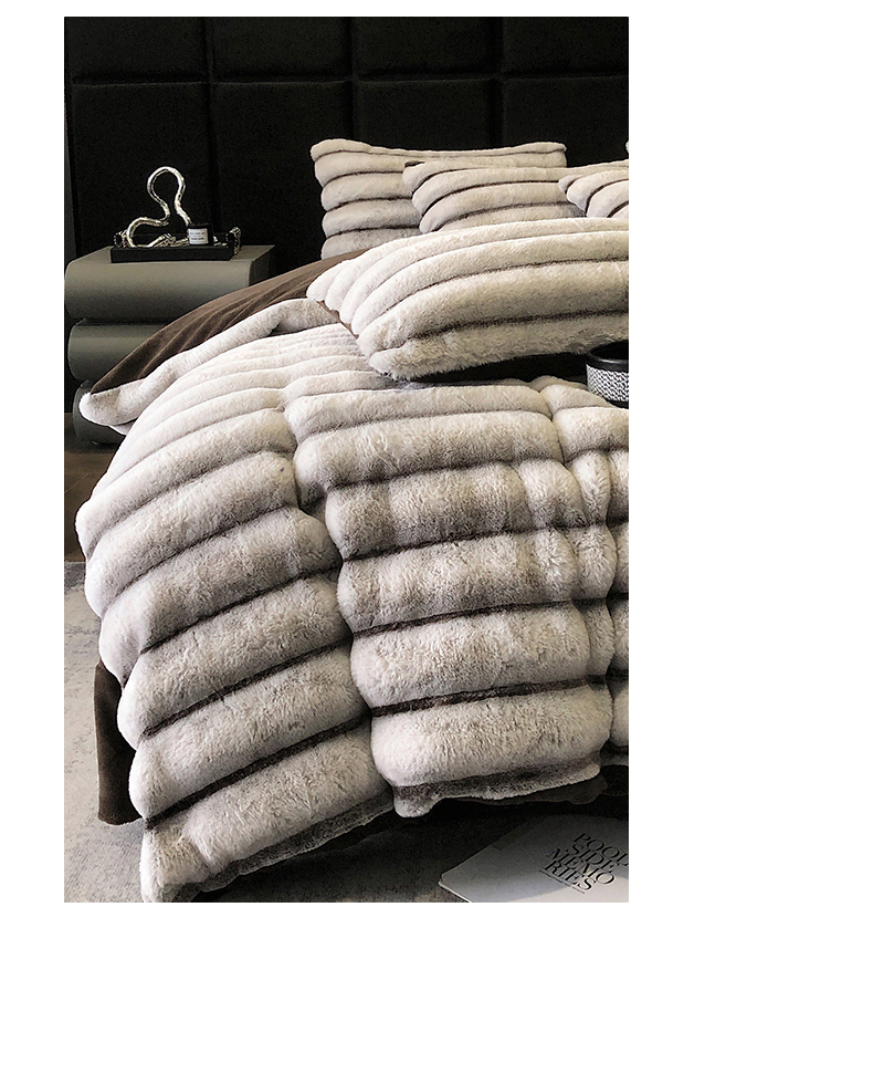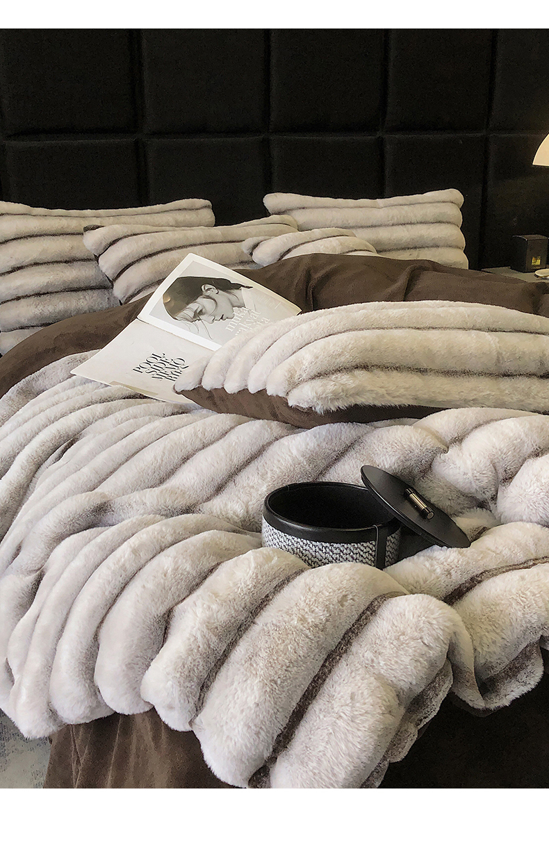 商品名称:罗优家纺 2025新款条纹兔兔绒四件套 棕灰