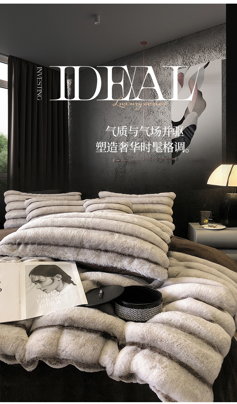 (总)罗优家纺 2025新款亲肤舒适轻奢仿兔兔绒套件四件套(小号188标准228加大248标准床笠238加大床笠258),奶茶驼,浅灰韵,云绒白