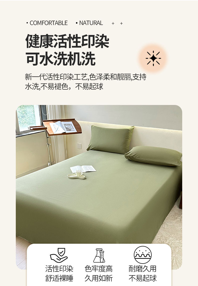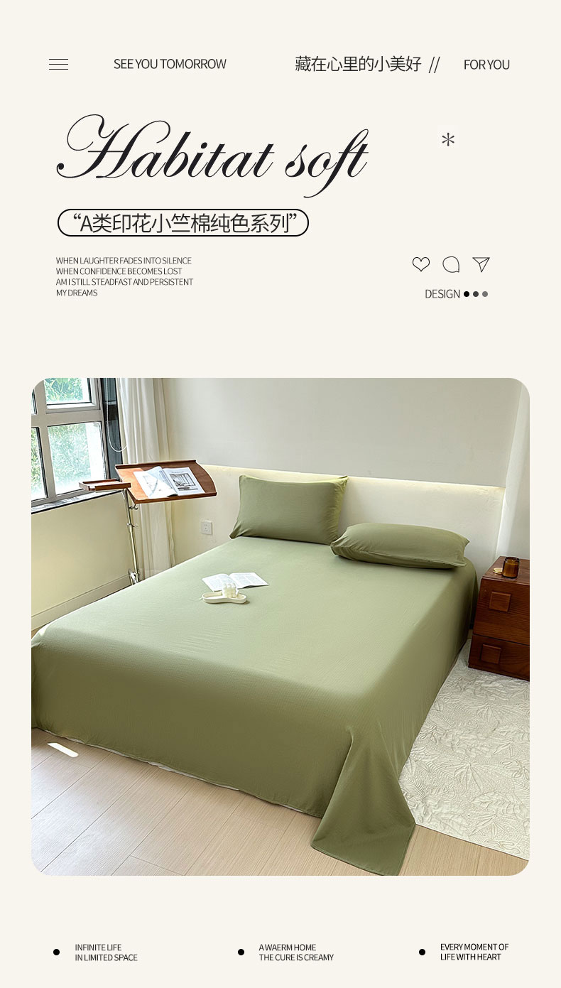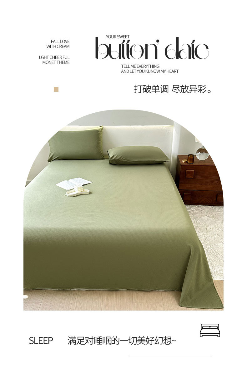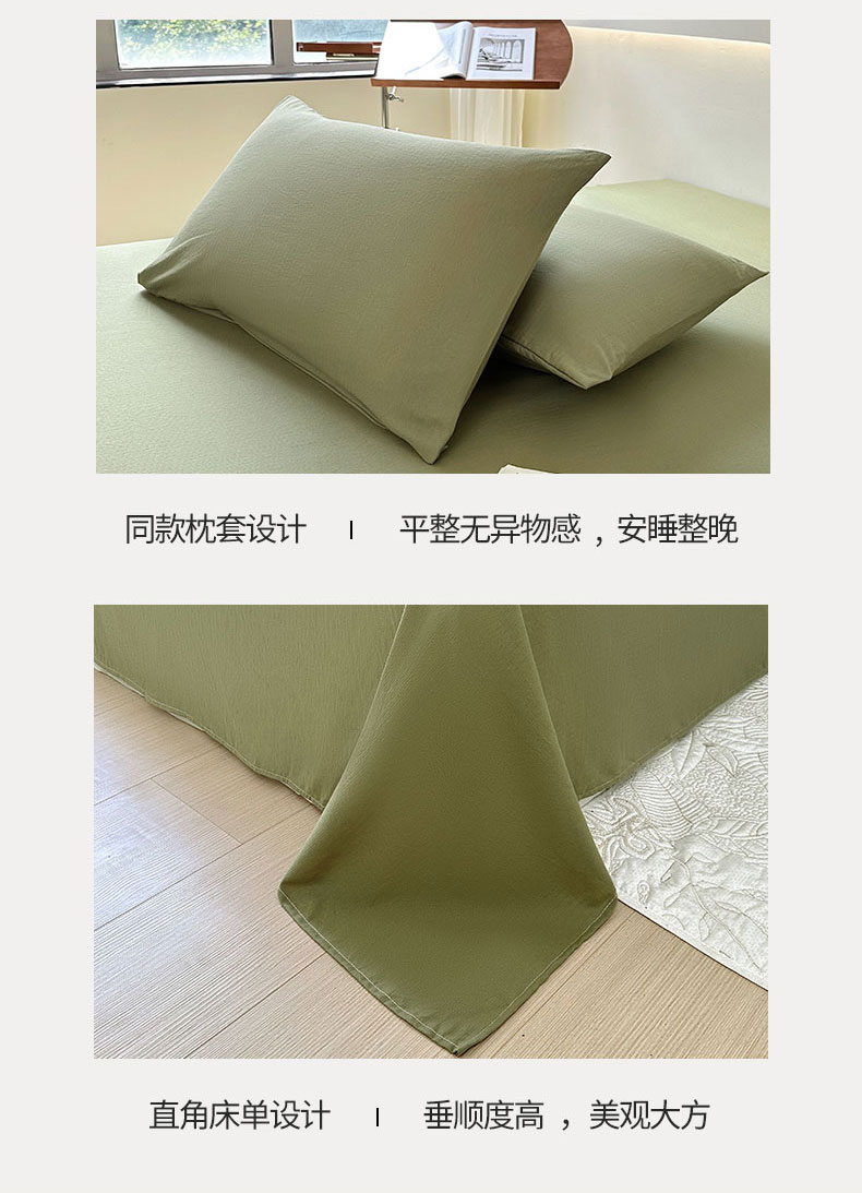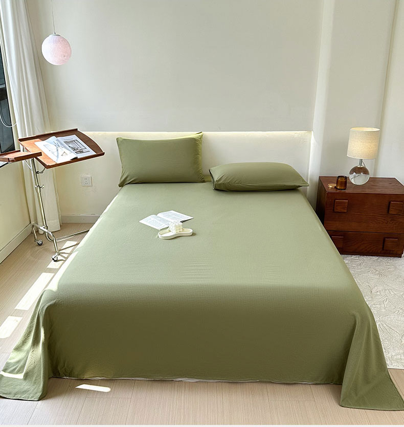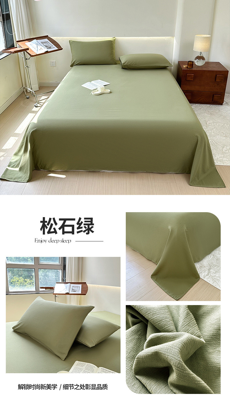 • 91家纺网 家纺一手货源 找家纺 火星时代 2023新款A类有氧提花小竺棉床单水洗棉粗布床单三件套 松石绿