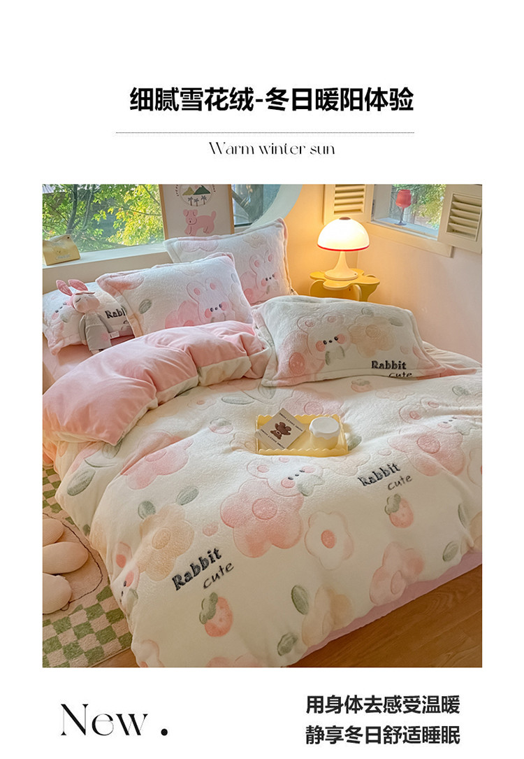 商品名称:慕尚 2025新款5D雪花绒单品系列-单被套 草莓兔