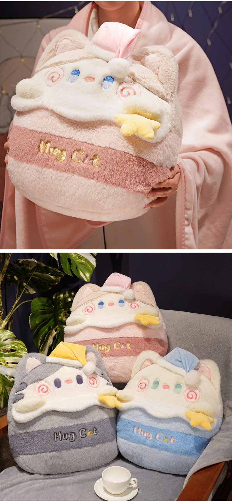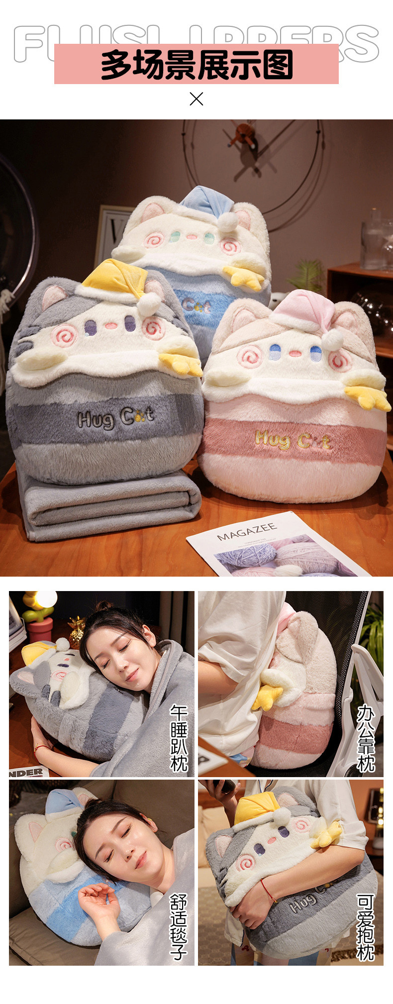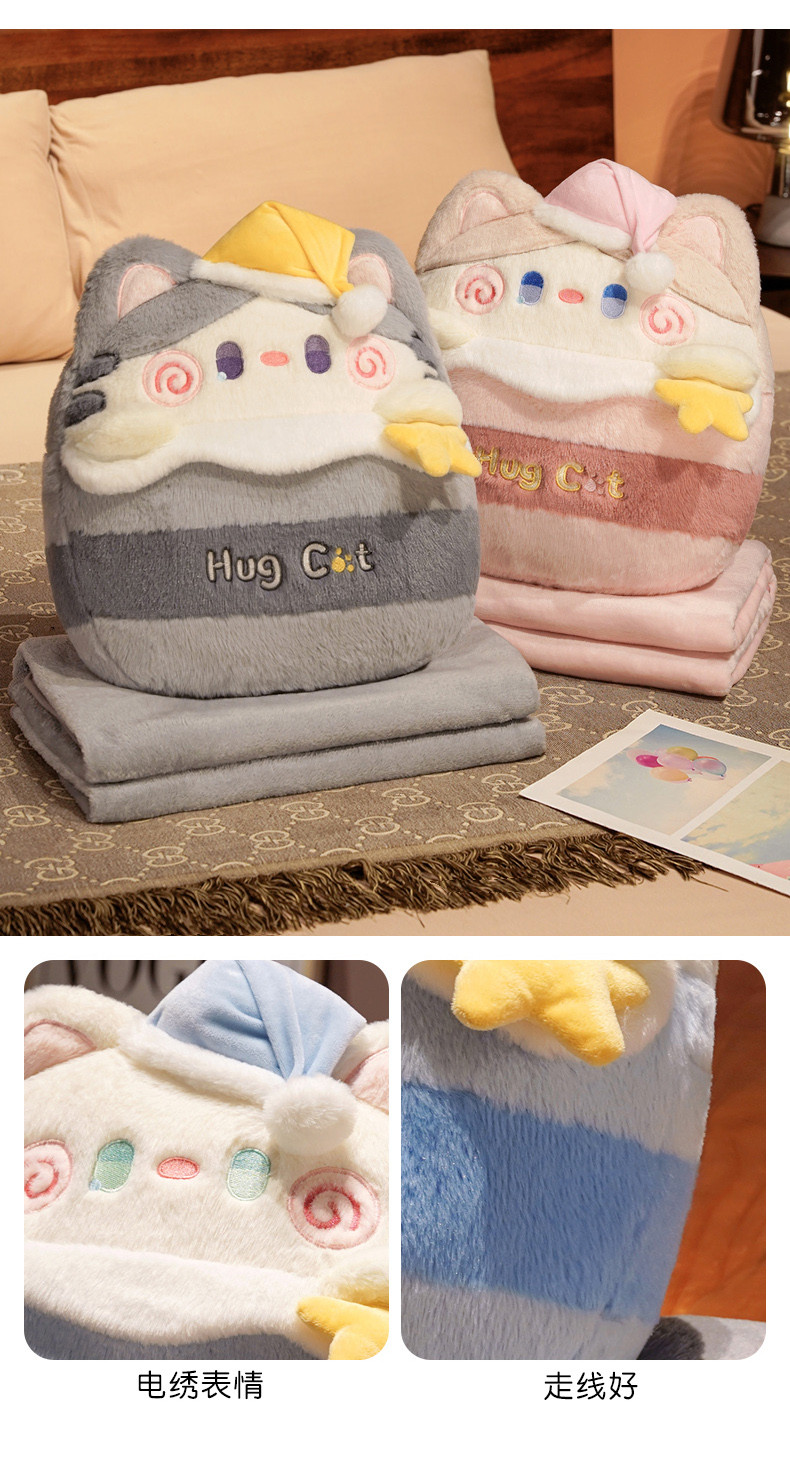 (总)仟亿莱 2023新款抱抱猫二合一抱枕毯