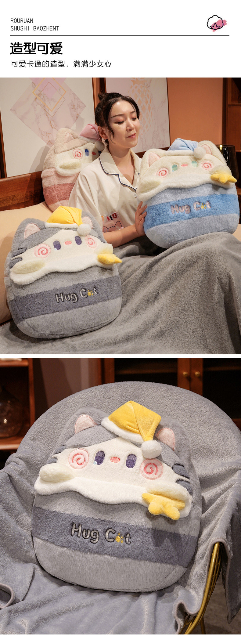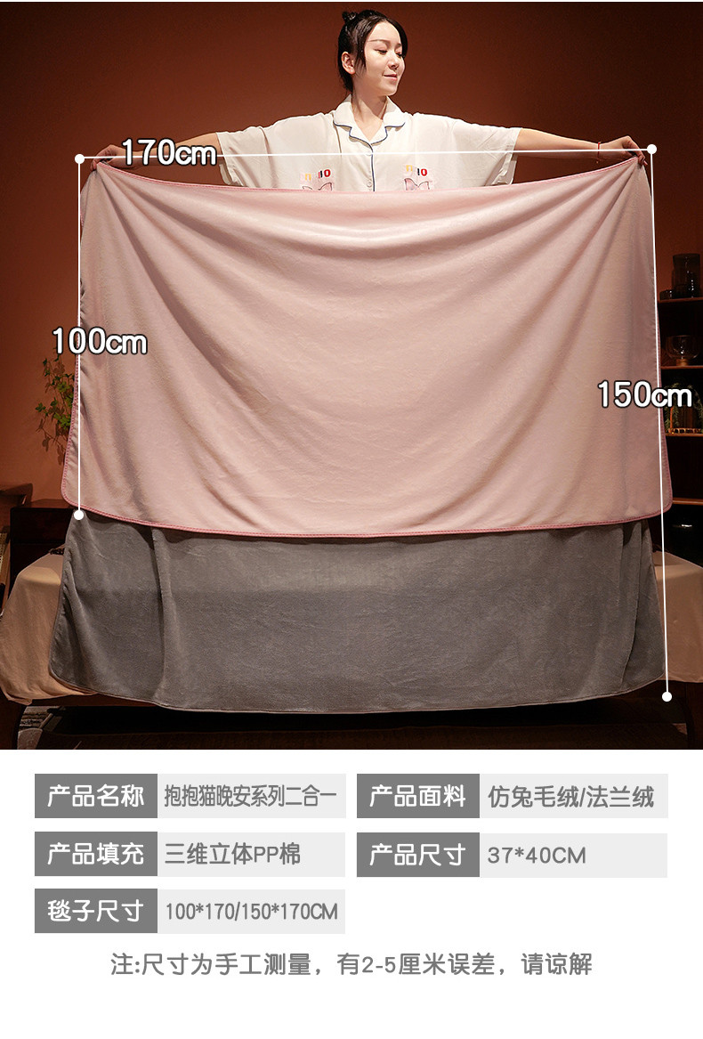 商品名称:(总)仟亿莱 2023新款抱抱猫二合一抱枕毯