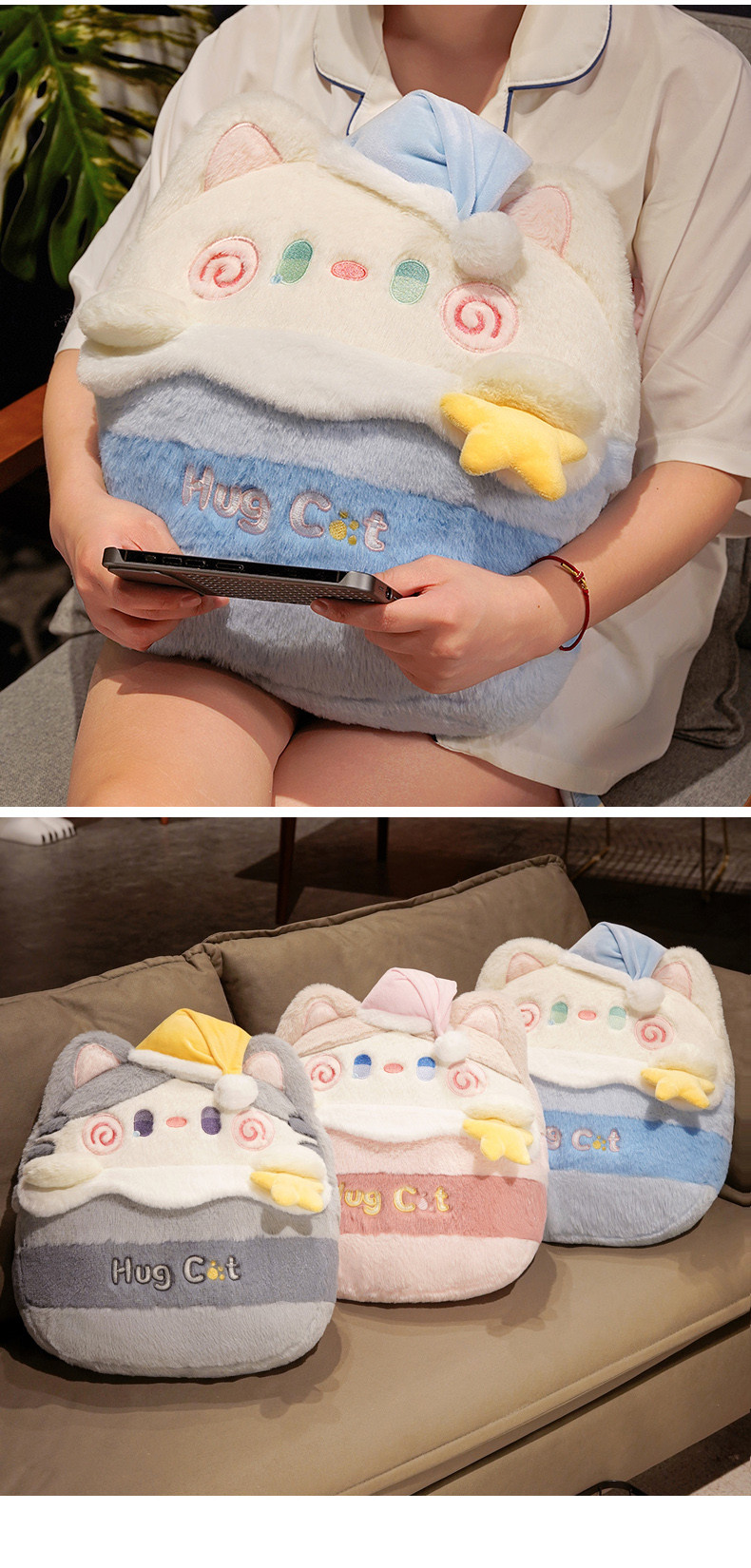 (总)仟亿莱 2025新款抱抱猫豆袋三用玩偶抱枕,组合图仅做展示不可下单,三用白猫,三用灰猫,三用奶咖猫