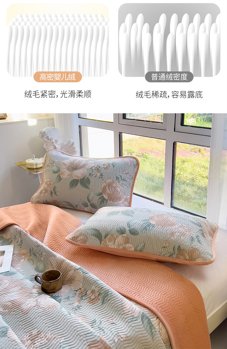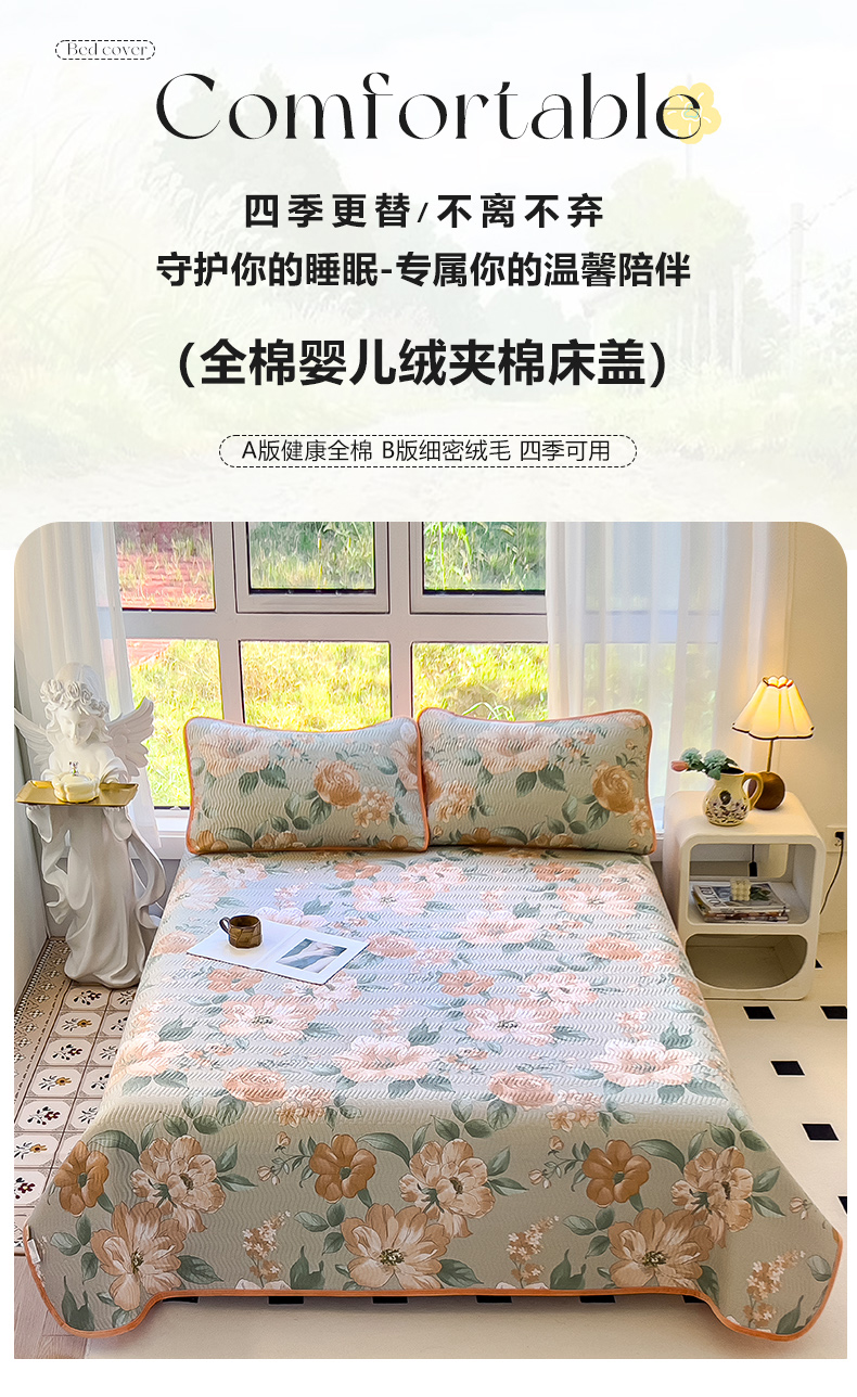 • 91家纺网 家纺一手货源 找家纺 2024新款40支棉加绒单床盖三件套双面可用全棉加厚婴儿绒 云花妙染