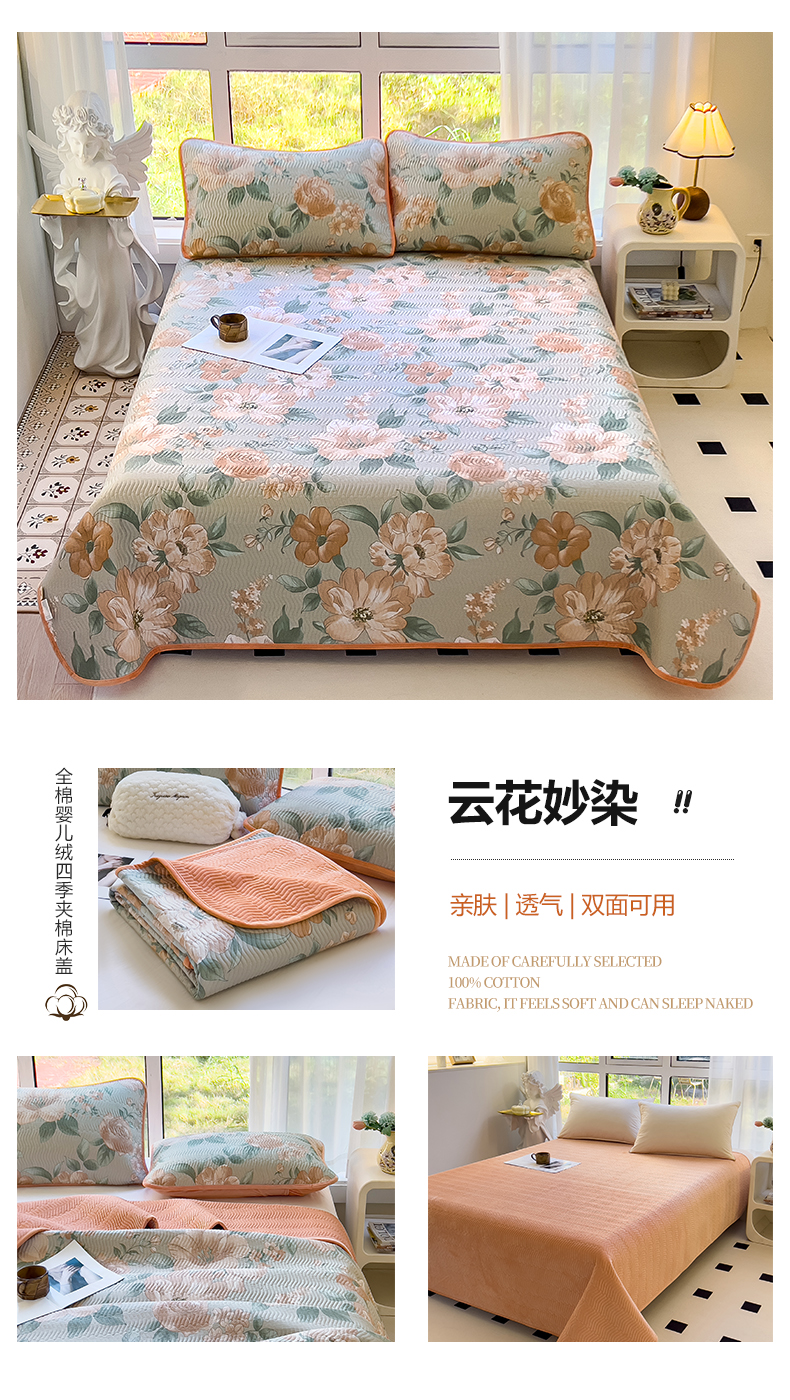 当前位置: 91家纺网 > 商品网购 > 床上用品 > 床盖 > 2024新款40支棉加绒单床盖三件套双面可用全棉加厚婴儿绒 云花妙染