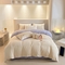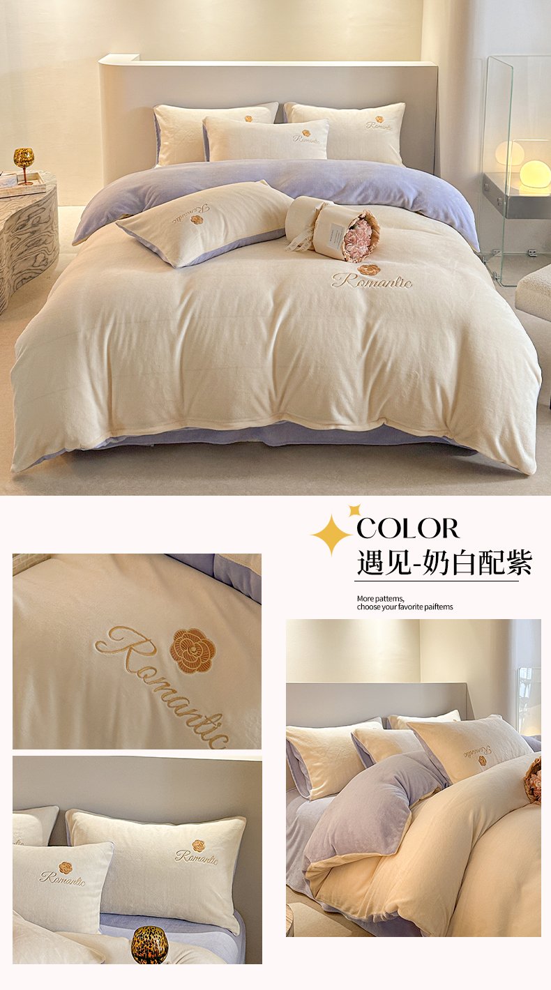 木堇家居 2023新款高克重刺绣牛奶绒四件套-遇见 遇见-奶白配紫