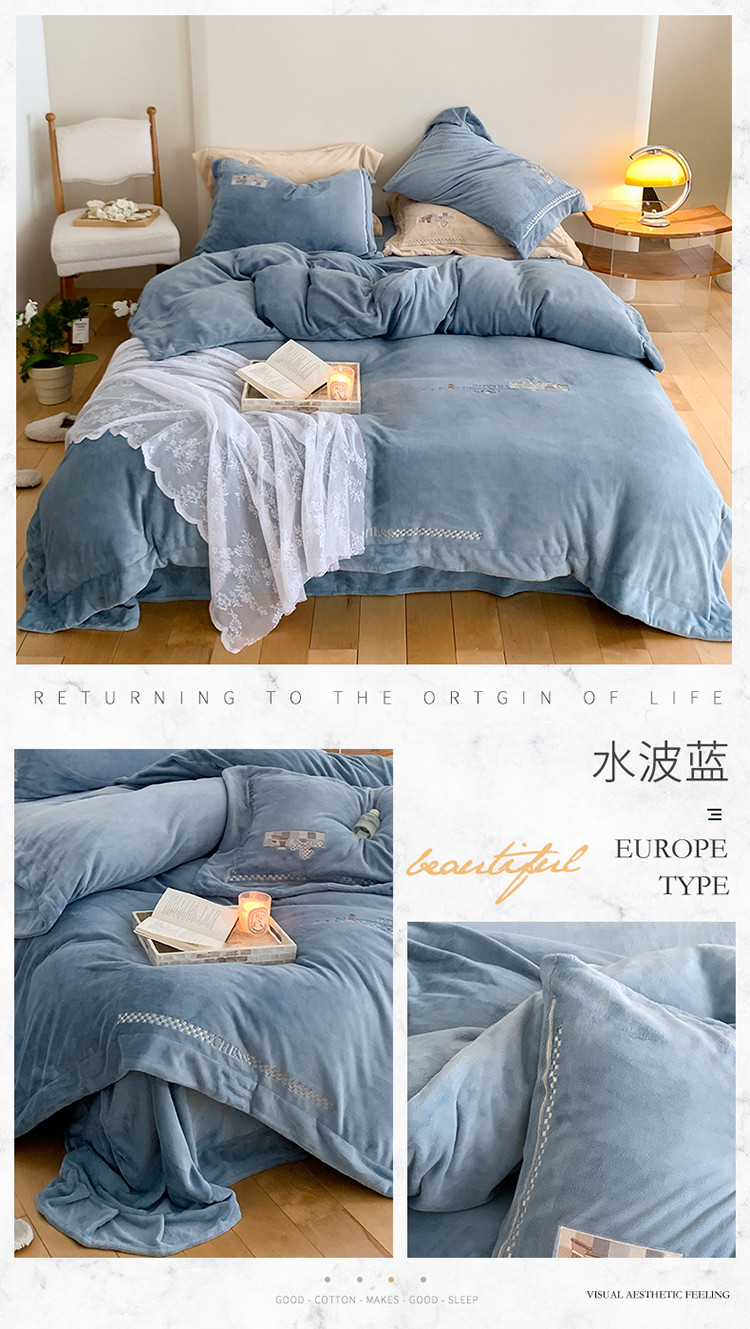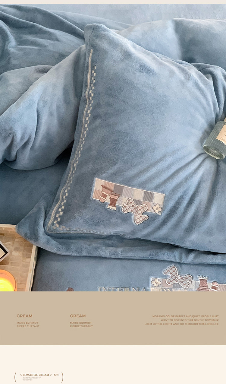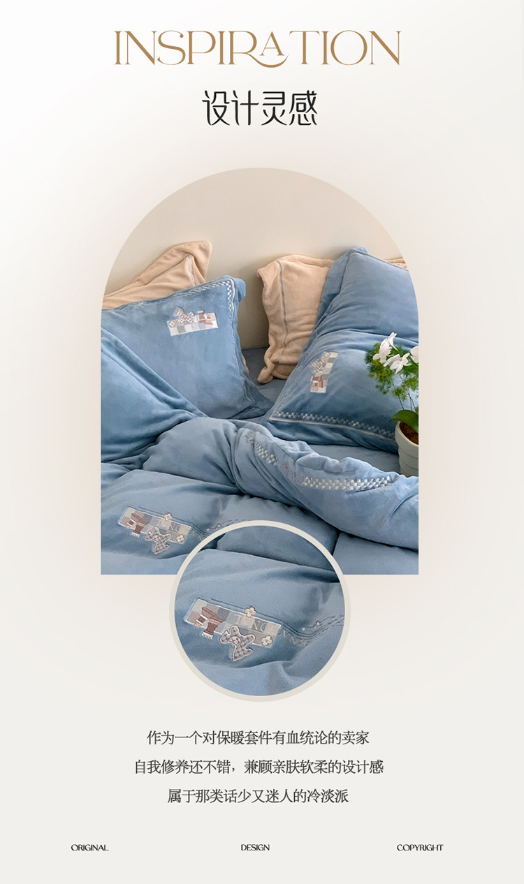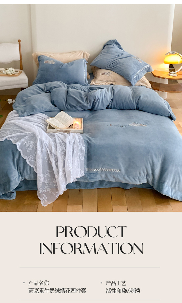 商品名称:(总)名品优仓 2023新款高克重230克牛奶绒绣花款四件套-极简