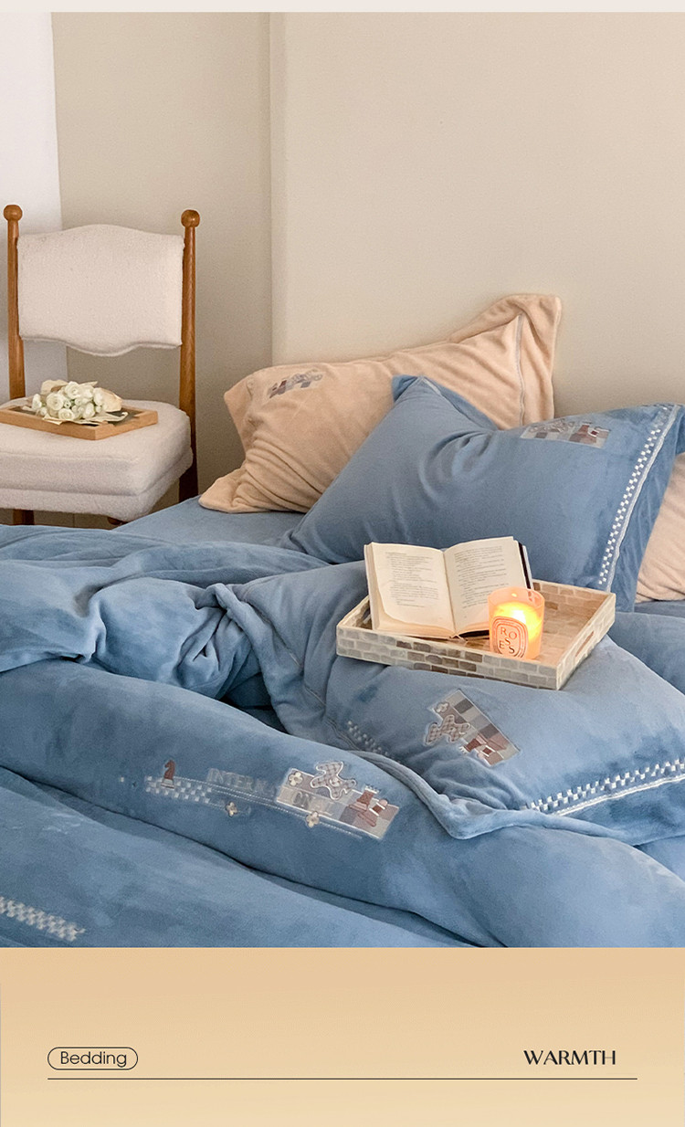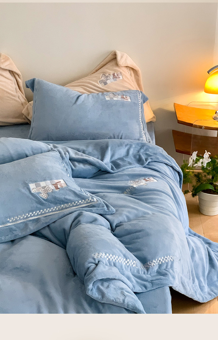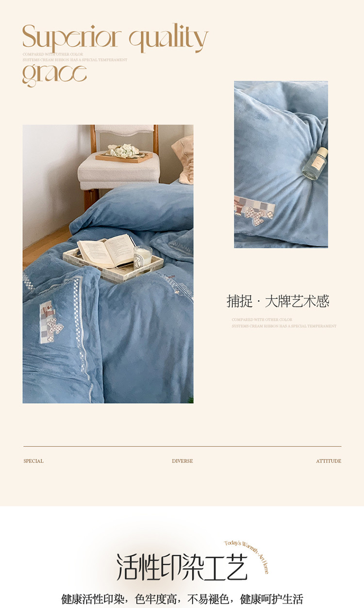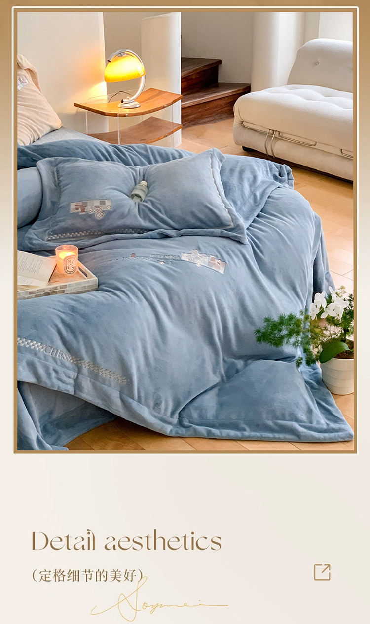 (总)名品优仓 2023新款高克重230克牛奶绒绣花款四件套-极简
