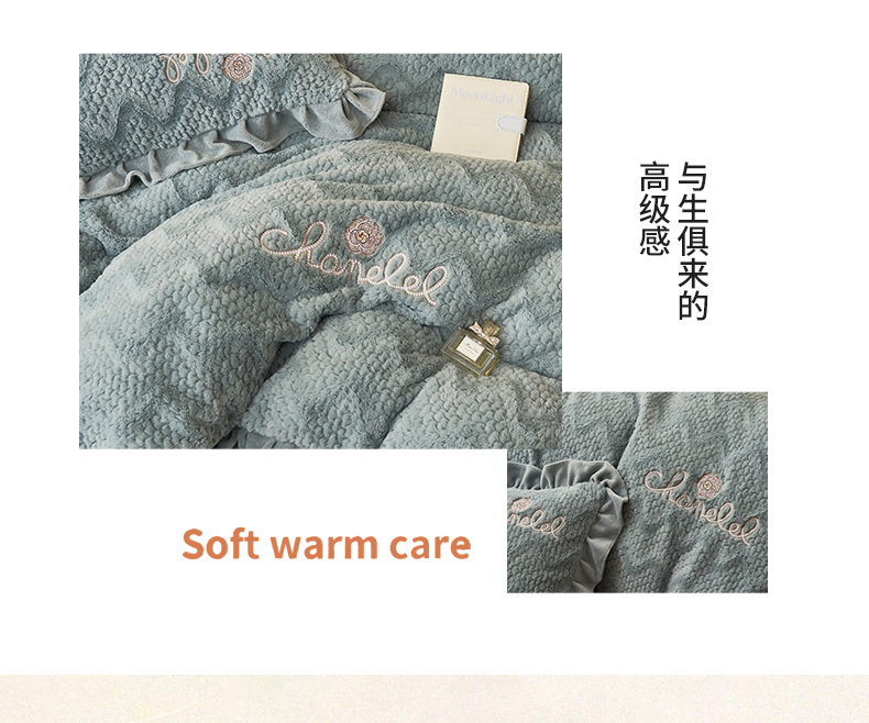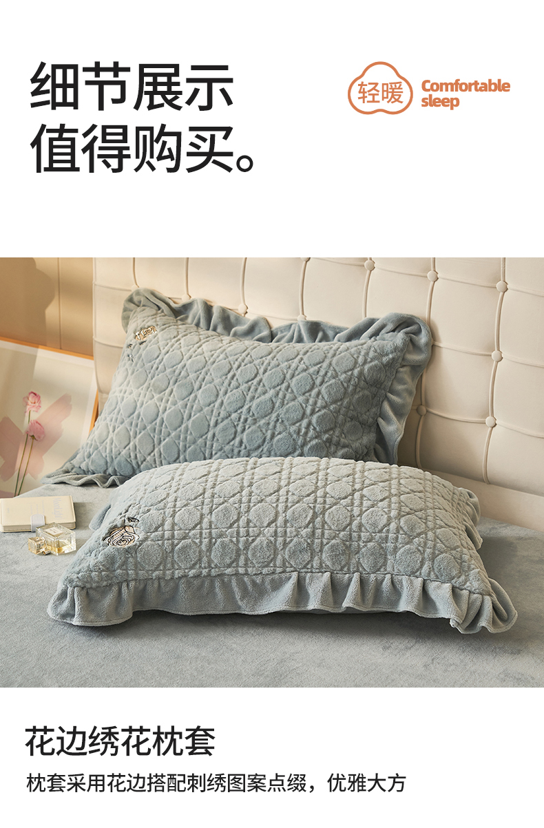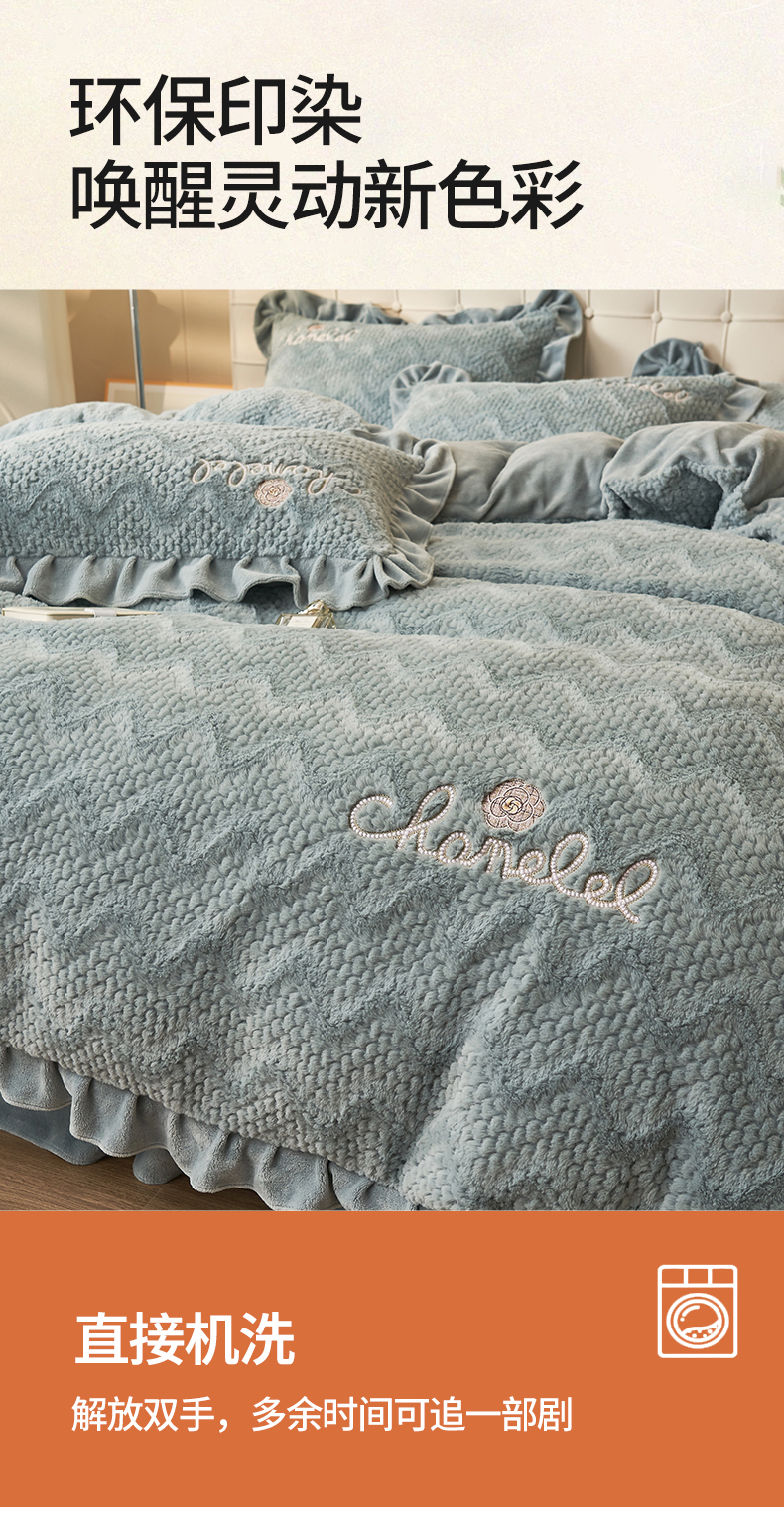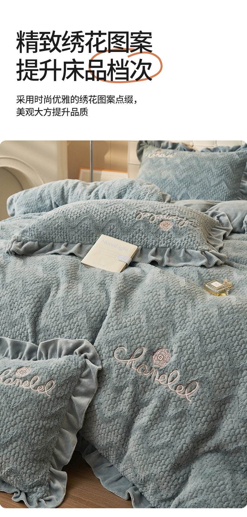 商品名称:恒爱家纺 2023新款兔毛绒绣花四件套 波浪款-兰灰
