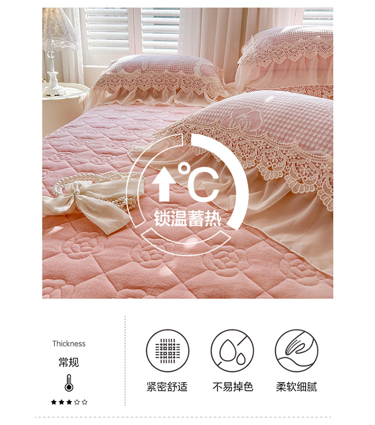 网红馆 2025新款牛奶雕花绒床裙花间浪漫 嫩粉色