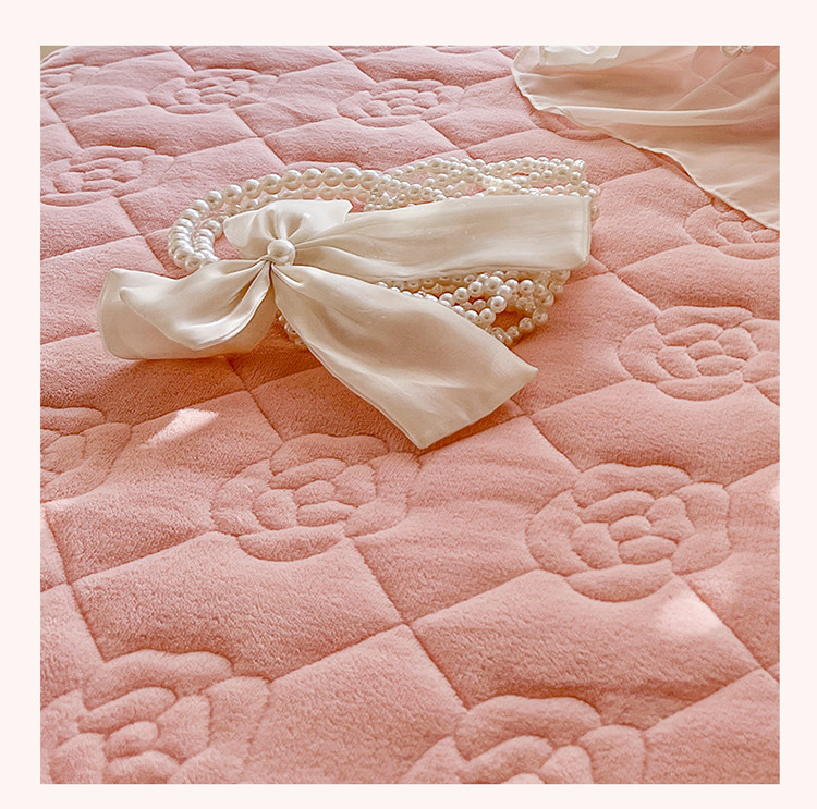 商品名称:网红馆 2025新款花间浪漫牛奶雕花绒床盖 嫩粉色
