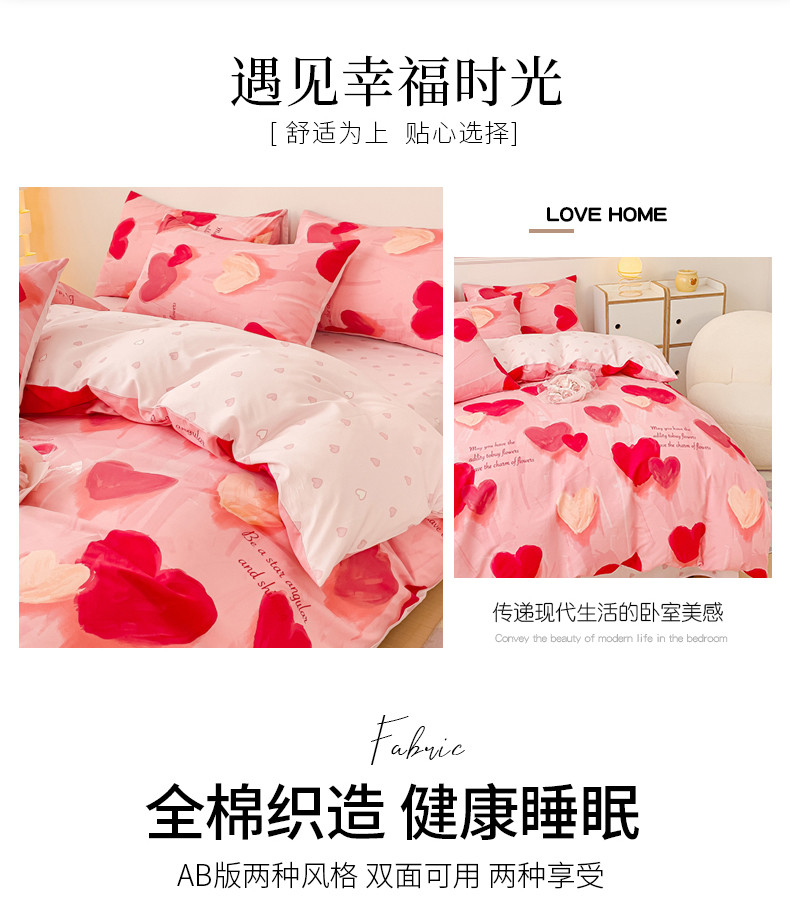 当前位置: 91家纺网 > 商品网购 > 床品套件 > 四件套 > 全棉普通四件套 > 金丝鸟家纺 2023新款全棉小清新四件套-第三批 深情