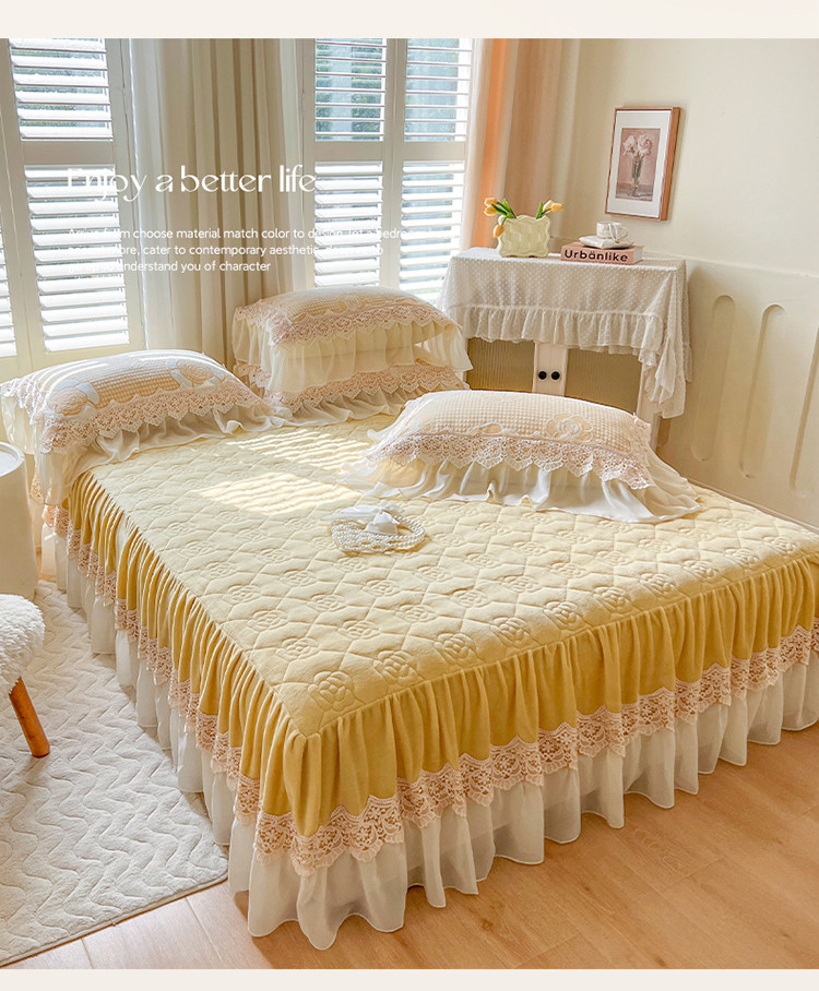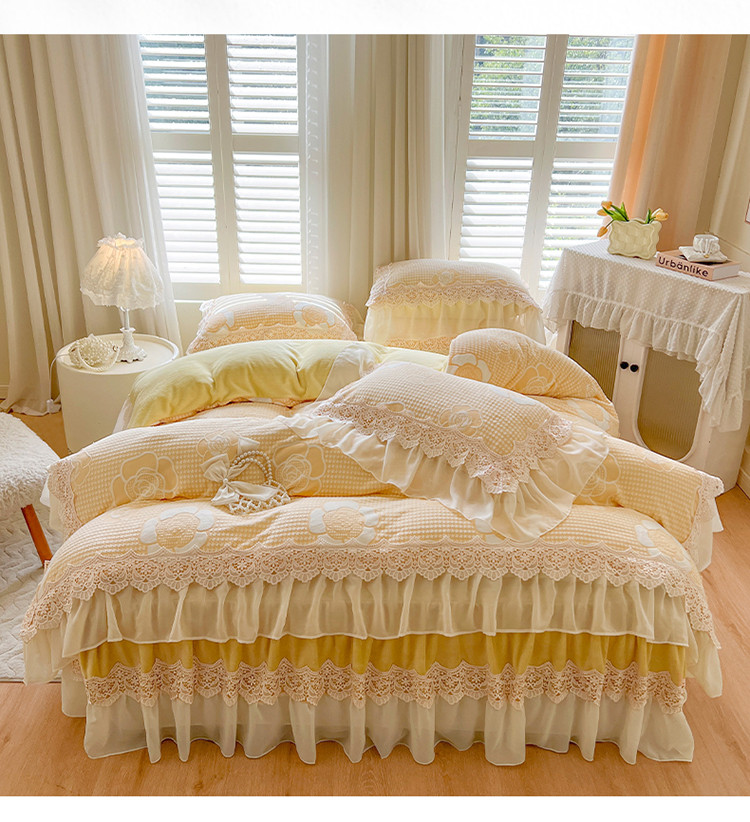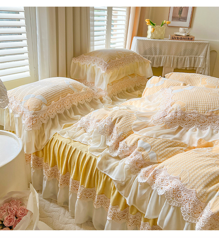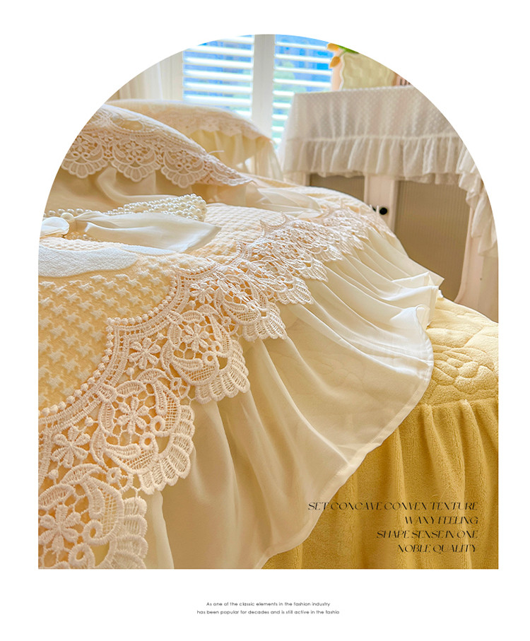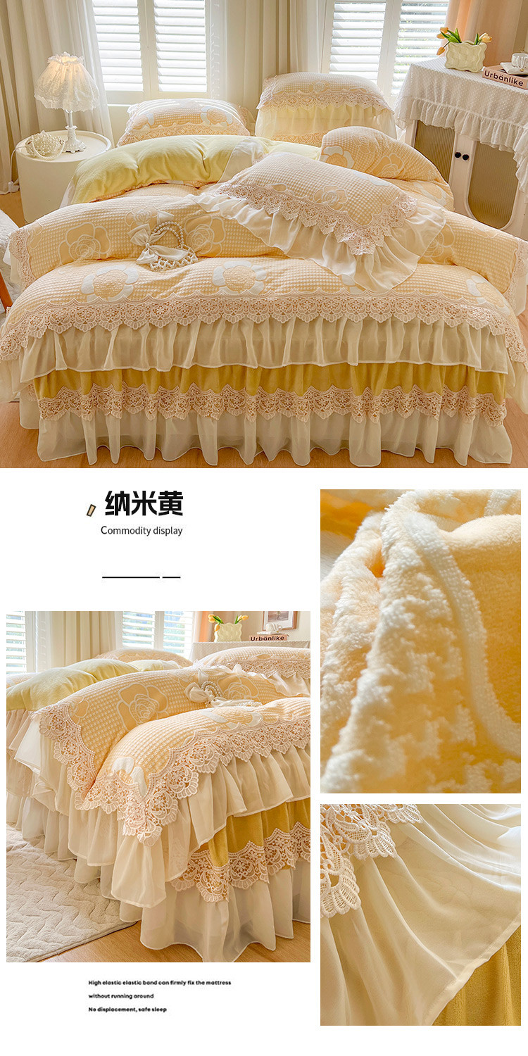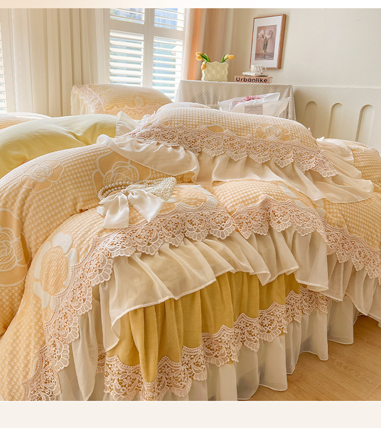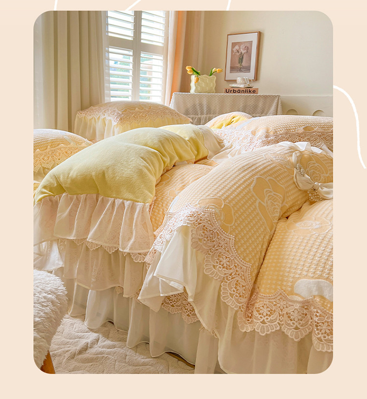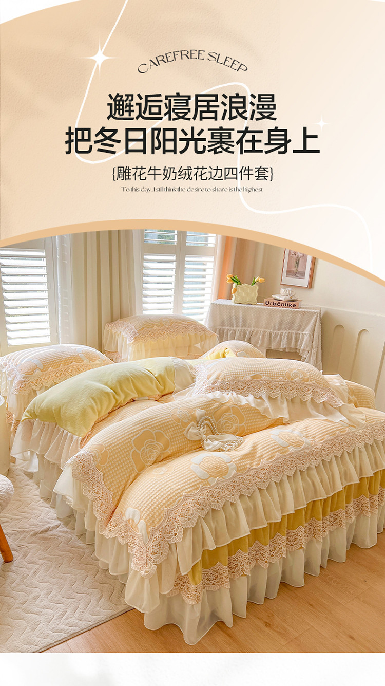 当前位置: 91家纺网 > 商品网购 > 床品套件 > 四件套 > 牛奶绒四件套 > 网红馆 2025新款花间浪漫 牛奶雕花绒四件套 纳米黄