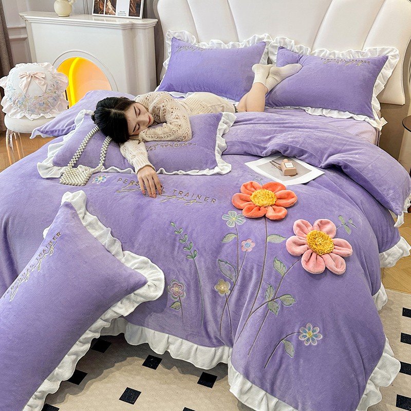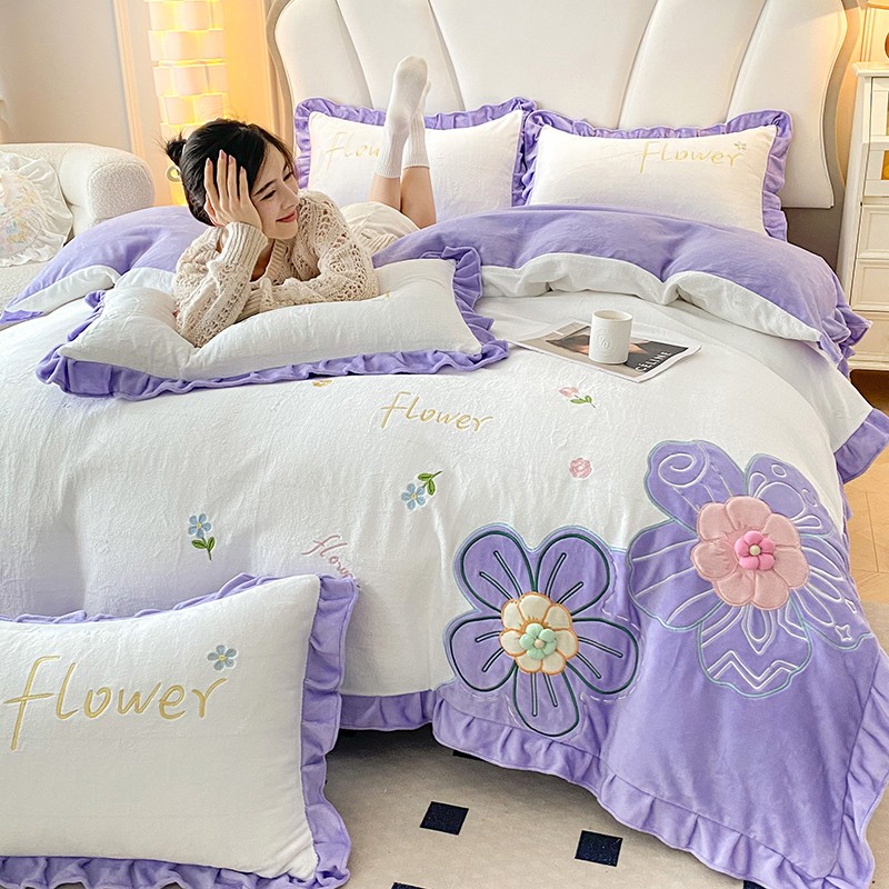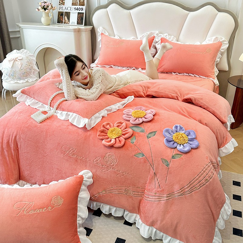 漫布云9斤230g韩版公主风立体花朵牛奶绒四件套宝宝绒贴布绣兔毛绒被套