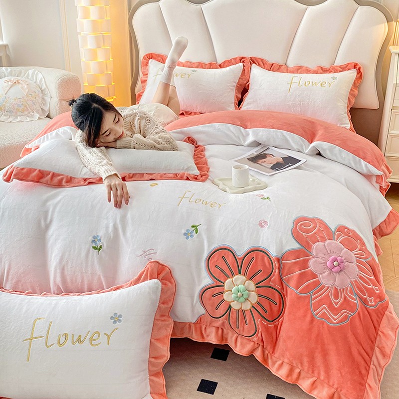 (总)漫布云2025秋冬新款全消光大版花卉平绣牛奶绒刺绣款四件套--绽放系列,绽放-艾玛橙, 绽放-豆沙红 ,绽放-樱花粉, 绽放-婴儿蓝 ,绽放-高级灰,绽放-梦幻紫