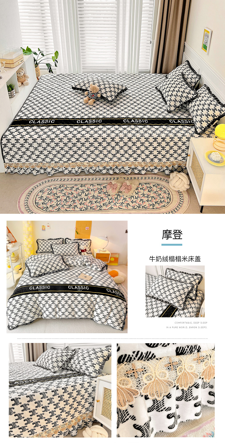 当前位置: 91家纺网 > 商品网购 > 床上用品 > 床盖 > 羽爱家纺 2024新款牛奶绒榻榻米床盖 摩登