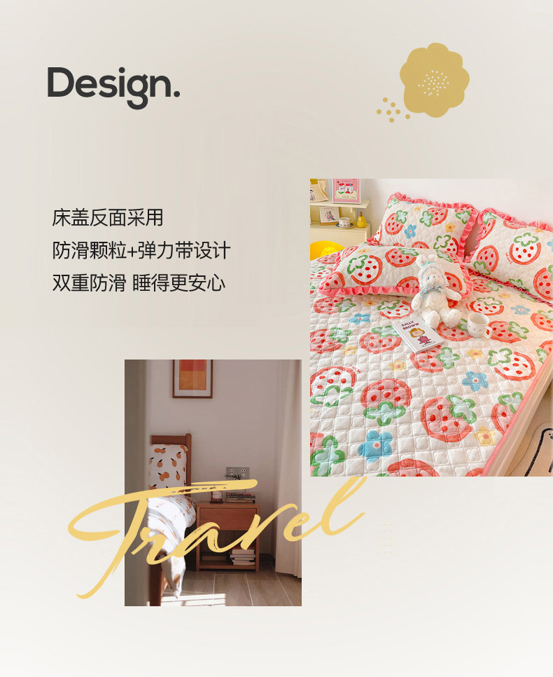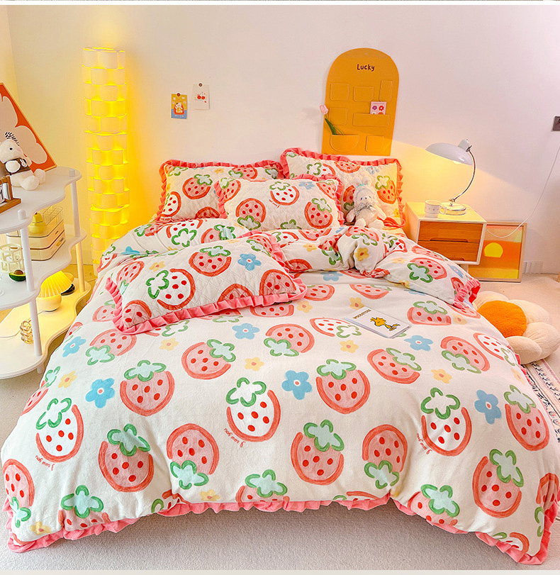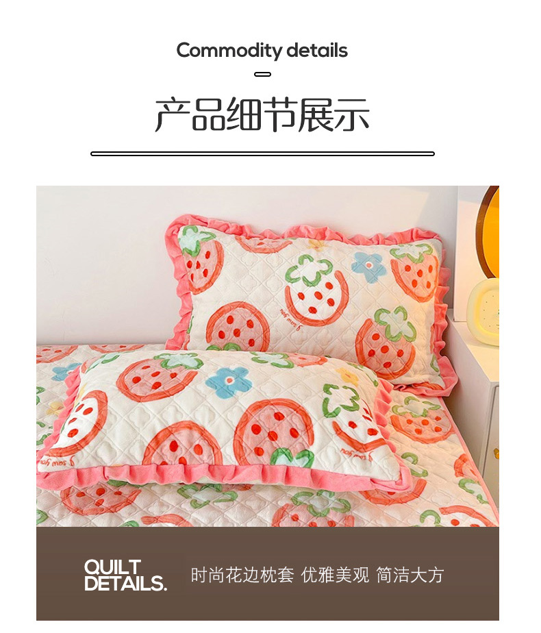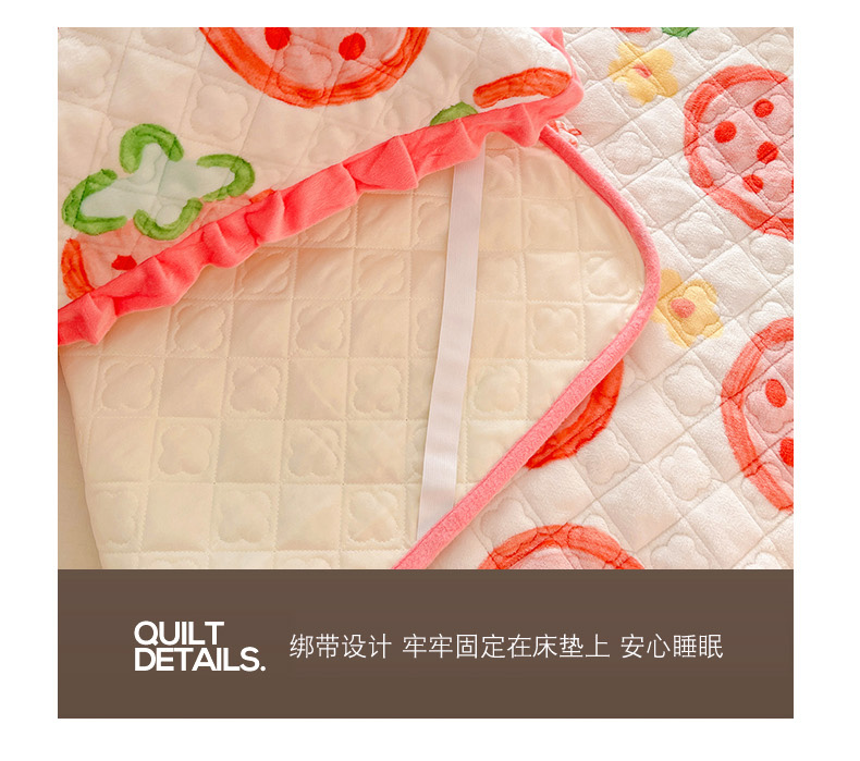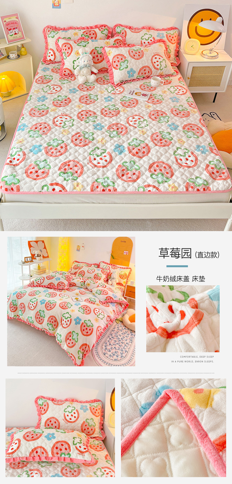 羽爱家纺 2024新款牛奶绒直边款床盖床垫 草莓园