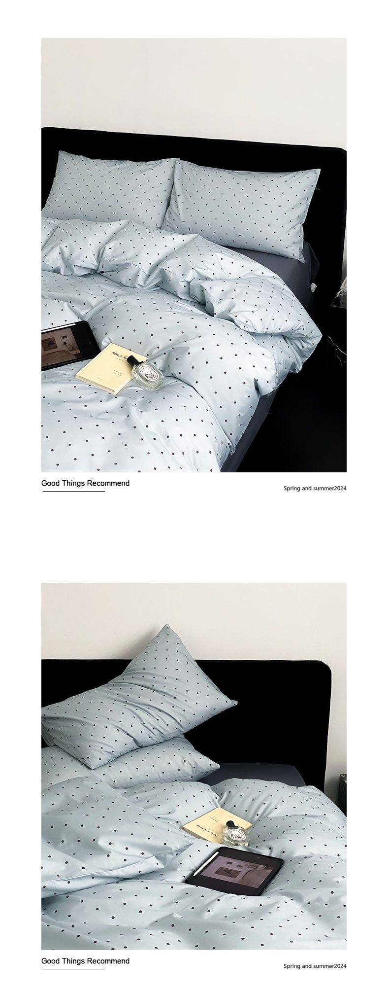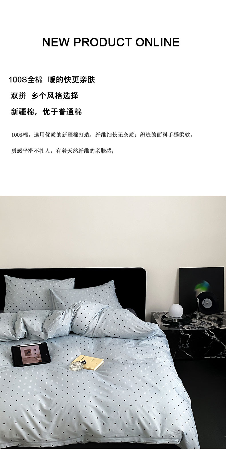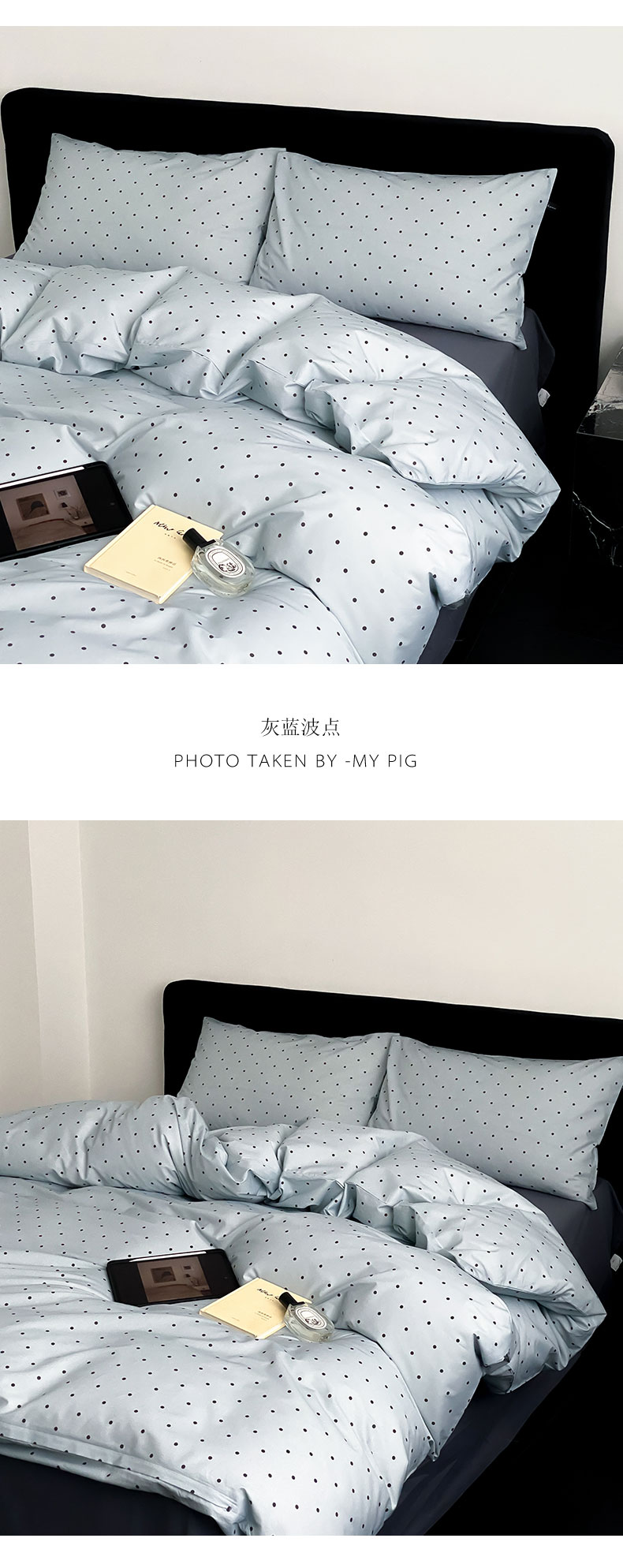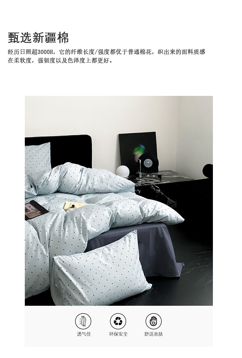 商品名称:Mr.pig猪先生水洗棉 2023新款A类全棉印花竖条纹四件套 灰蓝波点