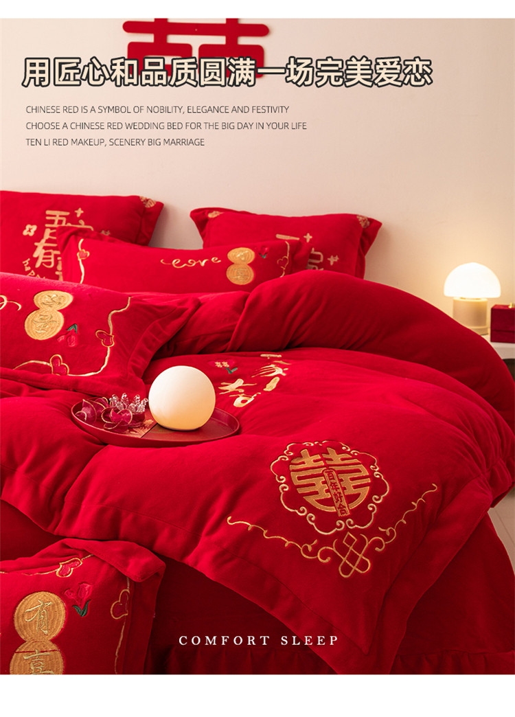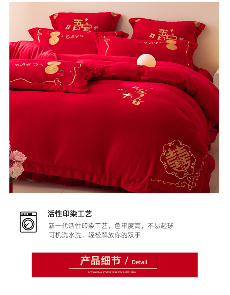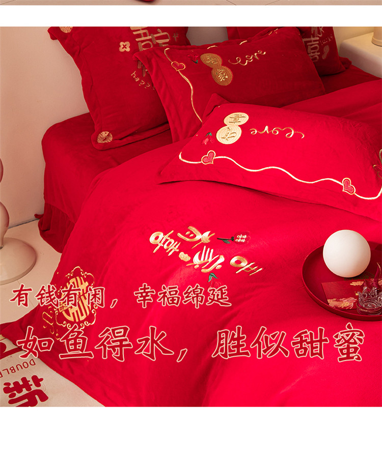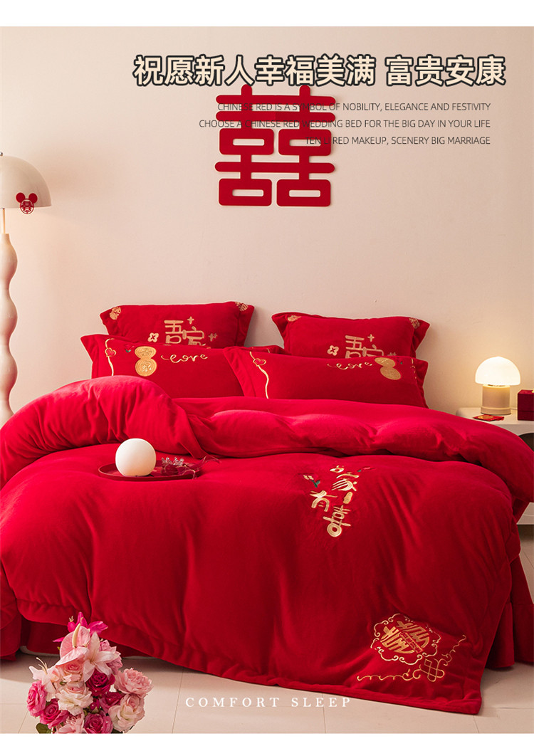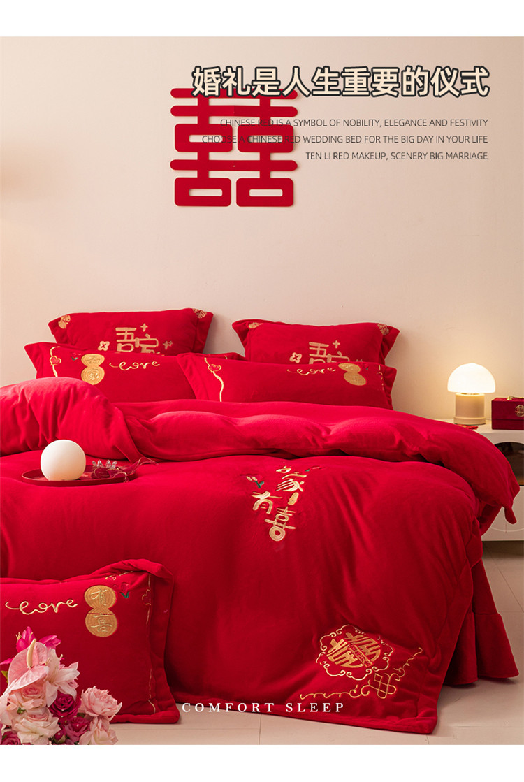当前位置: 91家纺网 > 商品网购 > 床品套件 > 四件套 > 牛奶绒四件套 > 2025新款高克重牛奶绒刺绣婚庆四件套大红套件 牛奶绒婚庆-吾家有喜