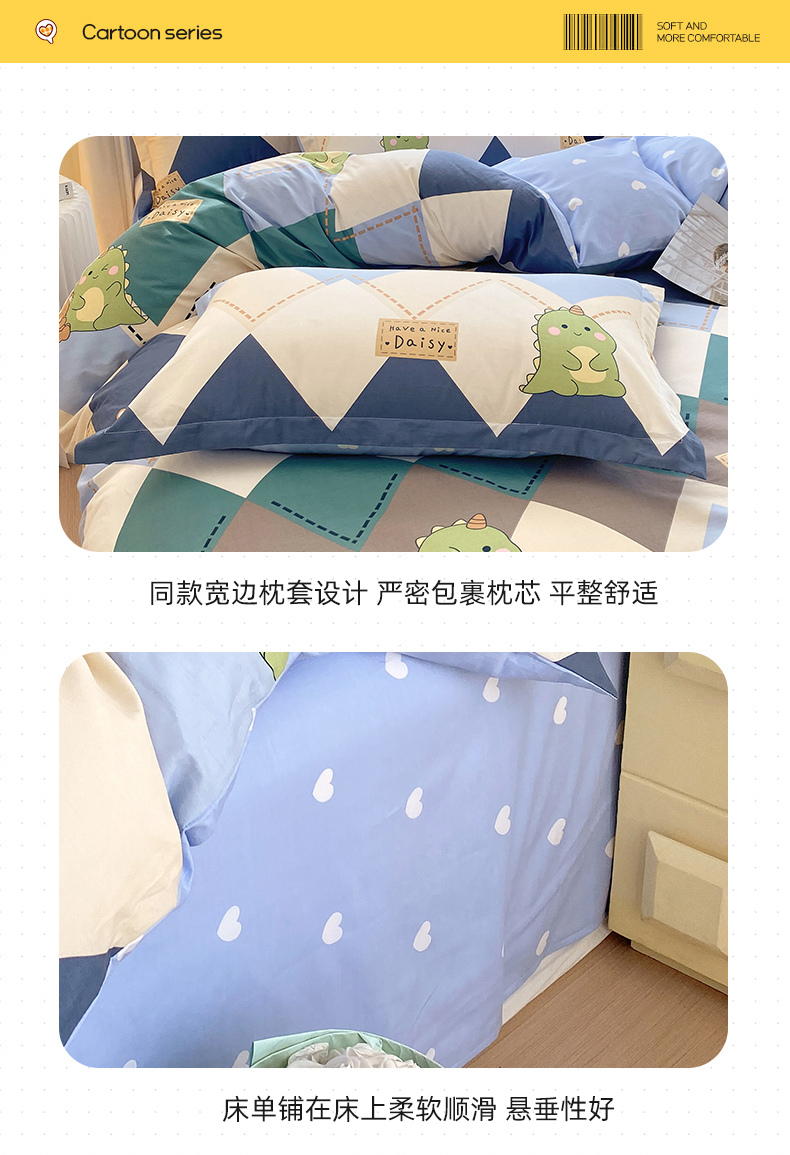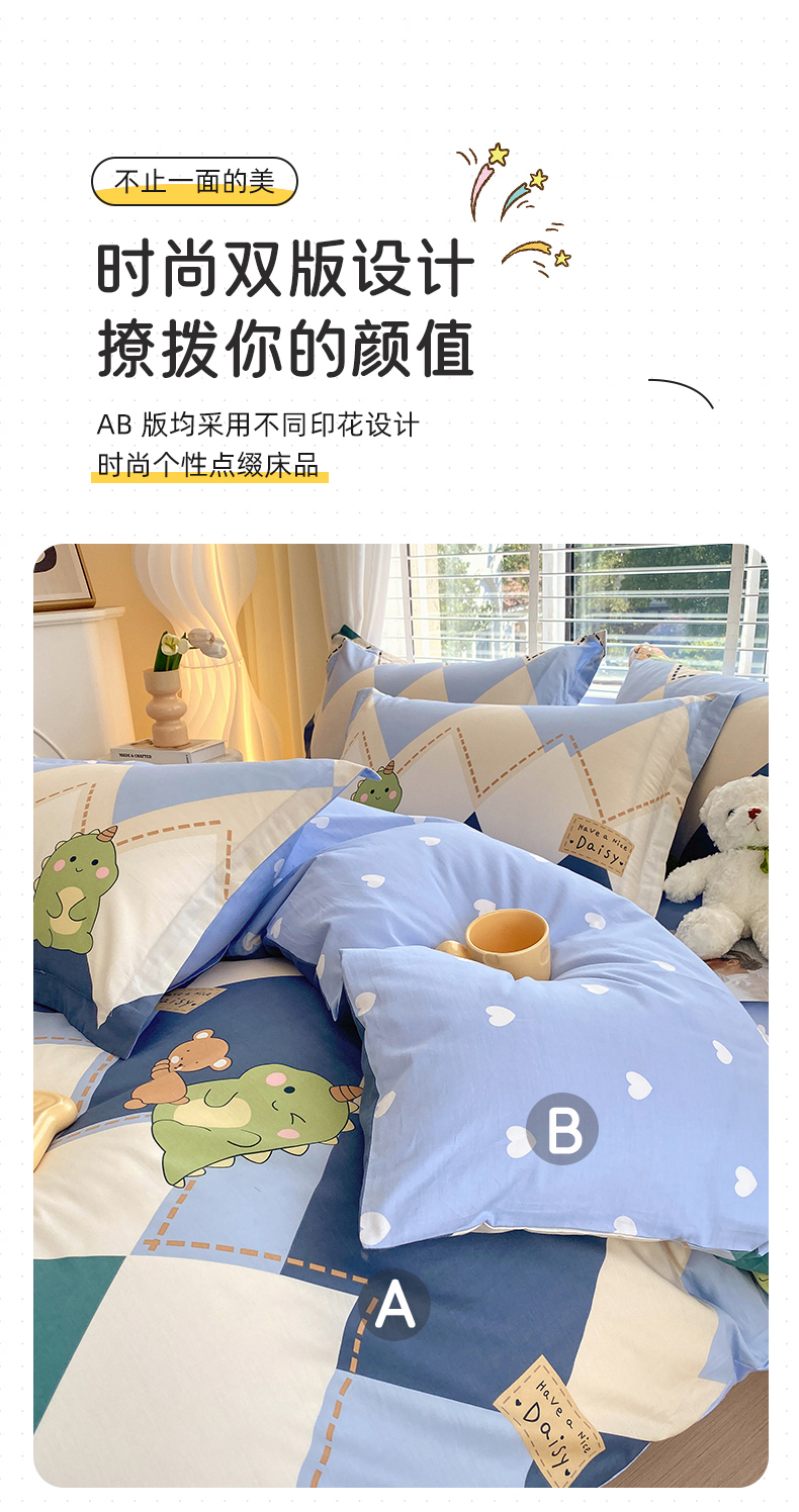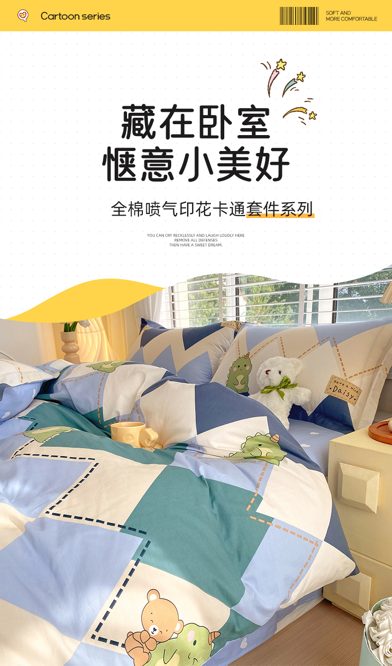 当前位置: 91家纺网 > 商品网购 > 床品套件 > 四件套 > 全棉普通四件套 > 拾物记 2024新款A类喷气全棉12868卡通印花四件套 淘淘龙0