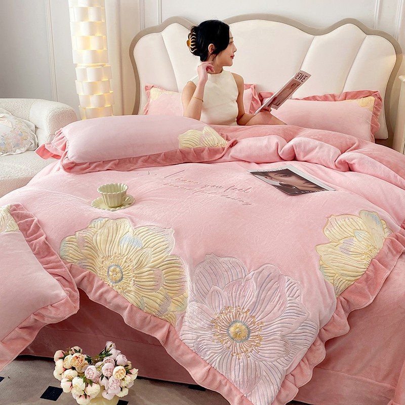 (总)漫布云2025秋冬新款全消光大版花卉平绣牛奶绒刺绣款四件套--绽放系列,绽放-艾玛橙, 绽放-豆沙红 ,绽放-樱花粉, 绽放-婴儿蓝 ,绽放-高级灰,绽放-梦幻紫