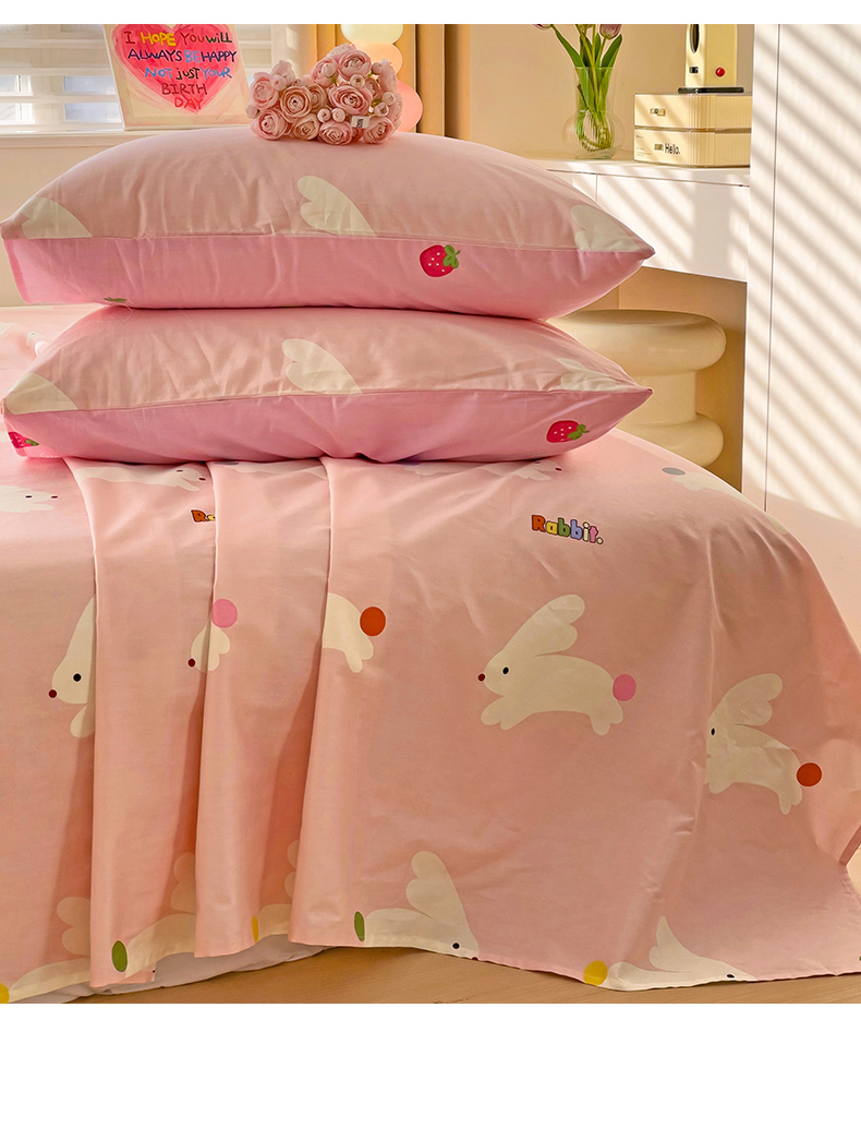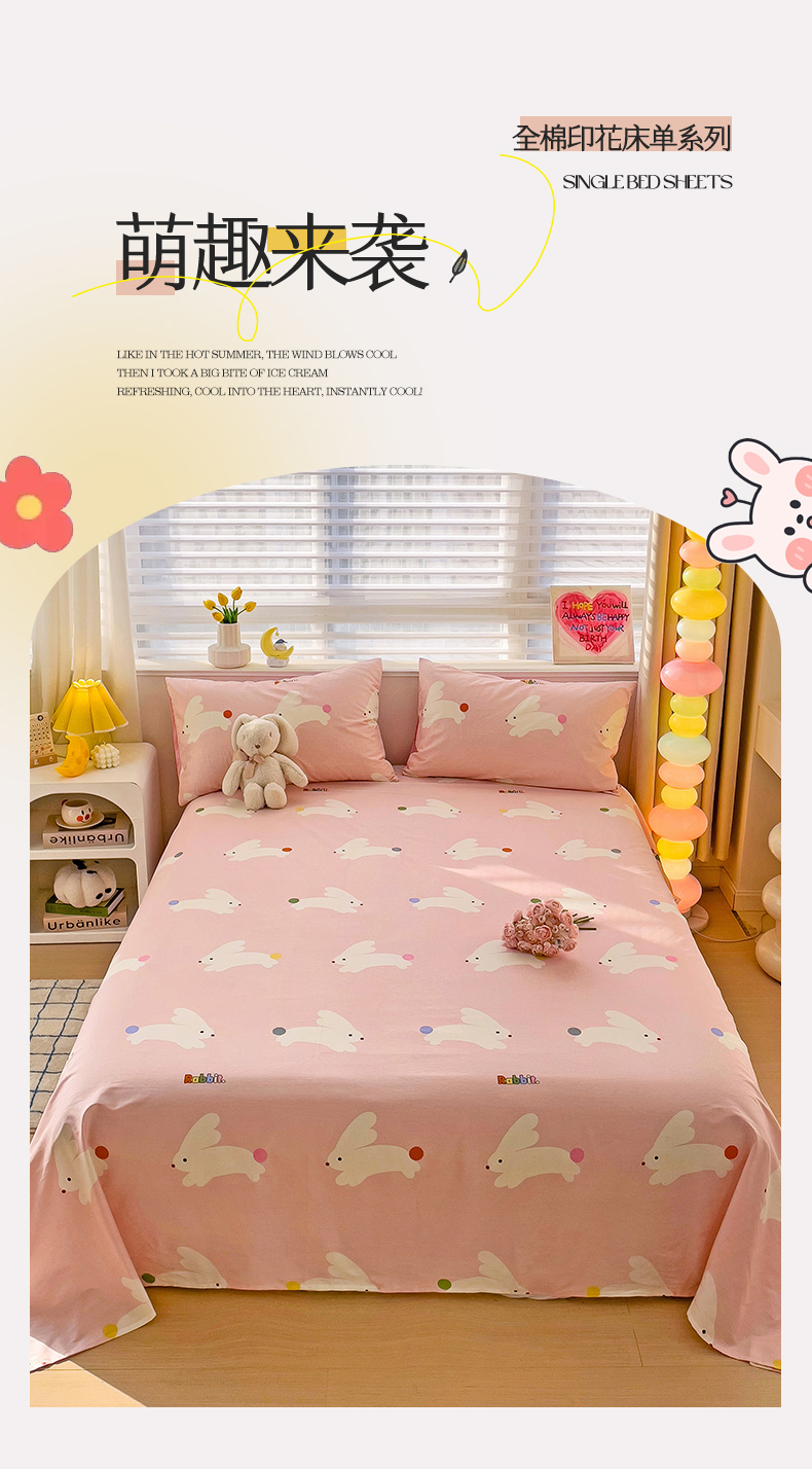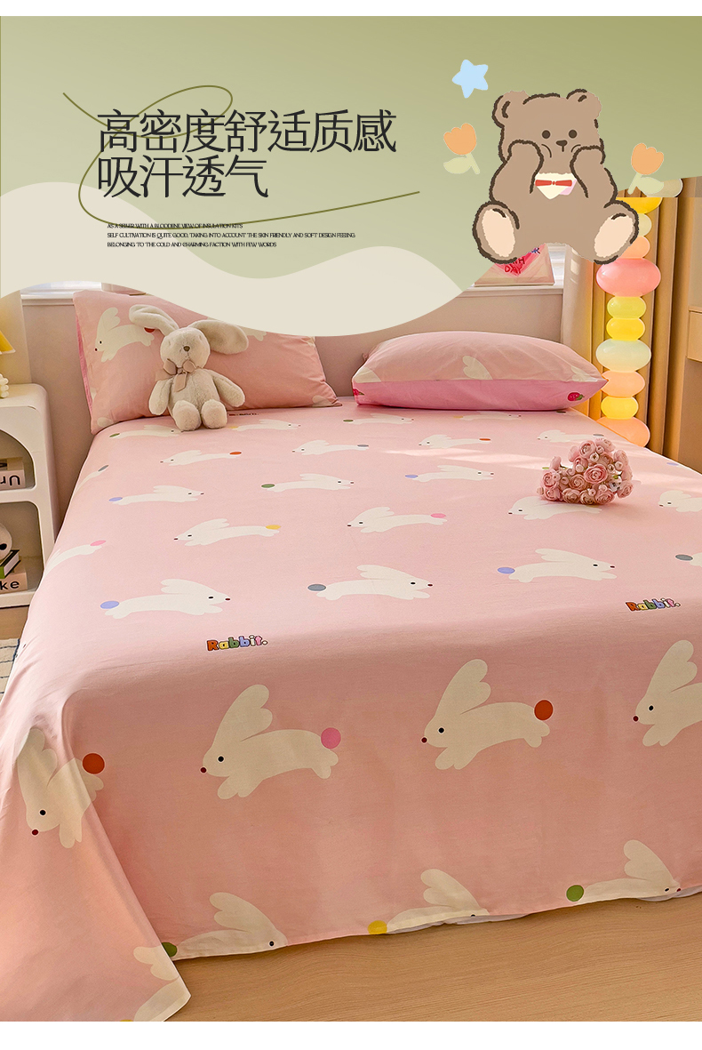名兮家居 2024新款小清新全棉单品床单 跳跳兔