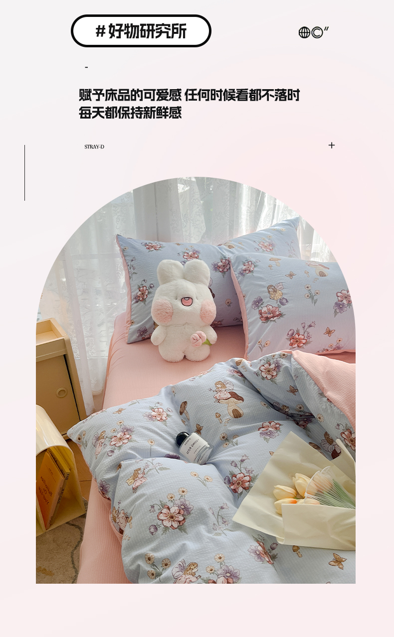 当前位置: 91家纺网 > 商品网购 > 床品套件 > 四件套 > 化纤普通四件套 > 玉海棠家纺 2024新款泡泡云朵棉四件套 花仙子