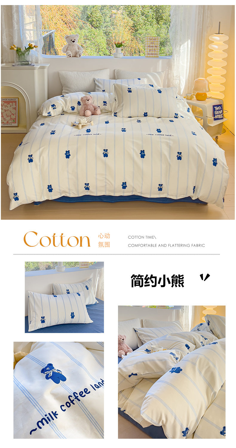 当前位置: 91家纺网 > 商品网购 > 床品套件 > 四件套 > 全棉普通四件套 > 感遇家纺 2024春夏新品全棉卡通印花四件套-第一批 简约小熊