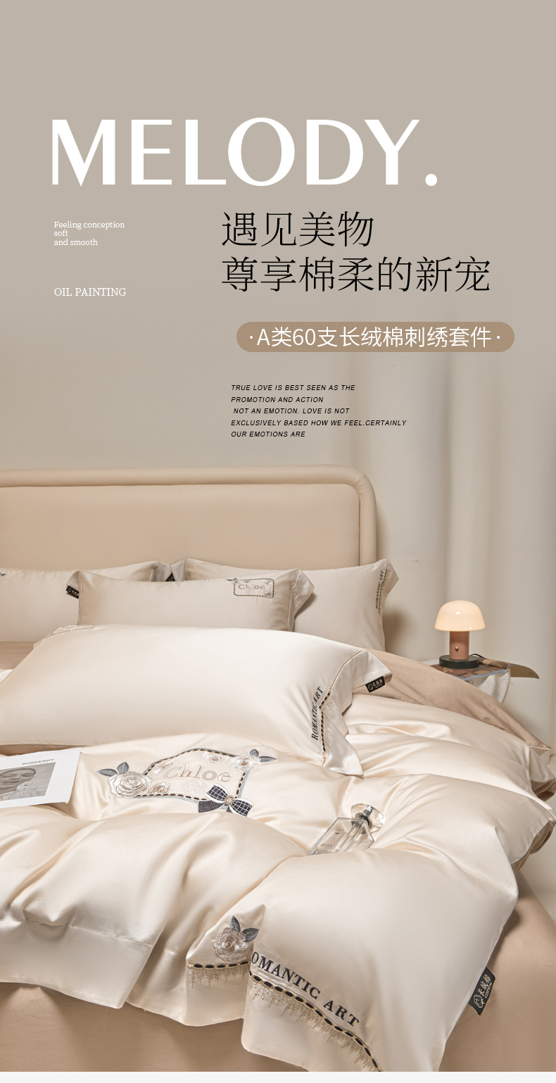 商品名称:(总)618家纺 2024新款A类60s长绒棉全棉纯棉四件套100%全棉可可系列 可可米卡