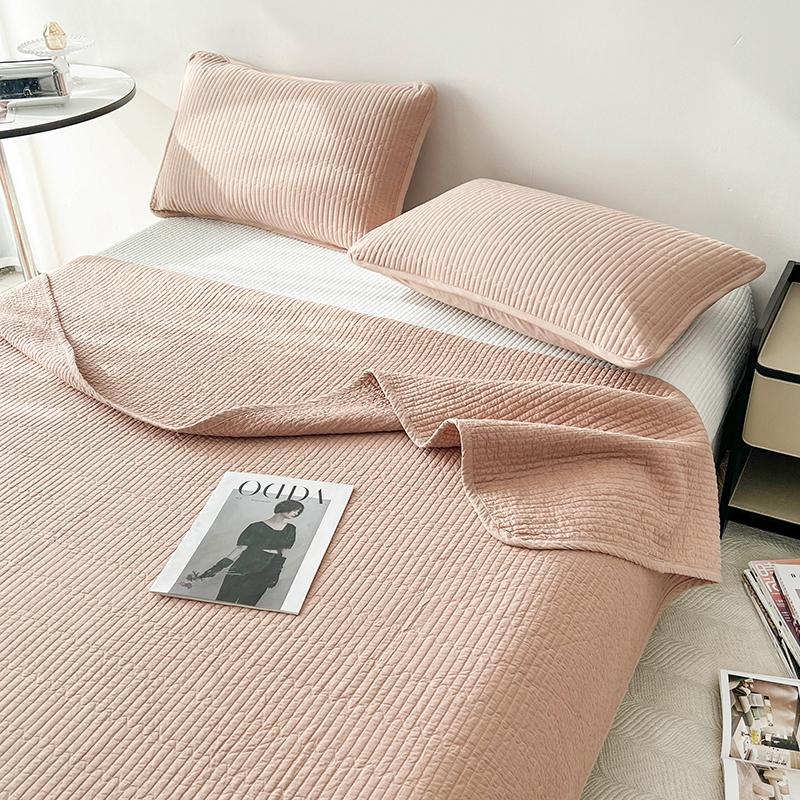 茉夕家纺 2024新款双面纯棉纯色棉花床盖 棉棉咖