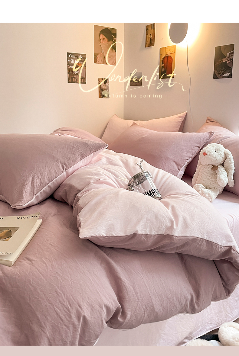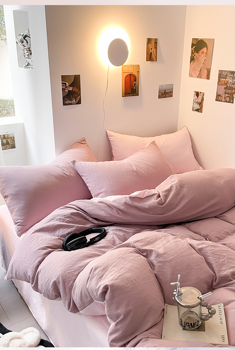(总)贝拉梦家纺 2024新款褶皱炒鸡糯纯色水洗棉学生床三件套,风信紫,浩瀚蓝,焦糖,可可蛋奶,马卡龙蓝,莫奈灰,桃夭,庭芜绿,香草冰激凌