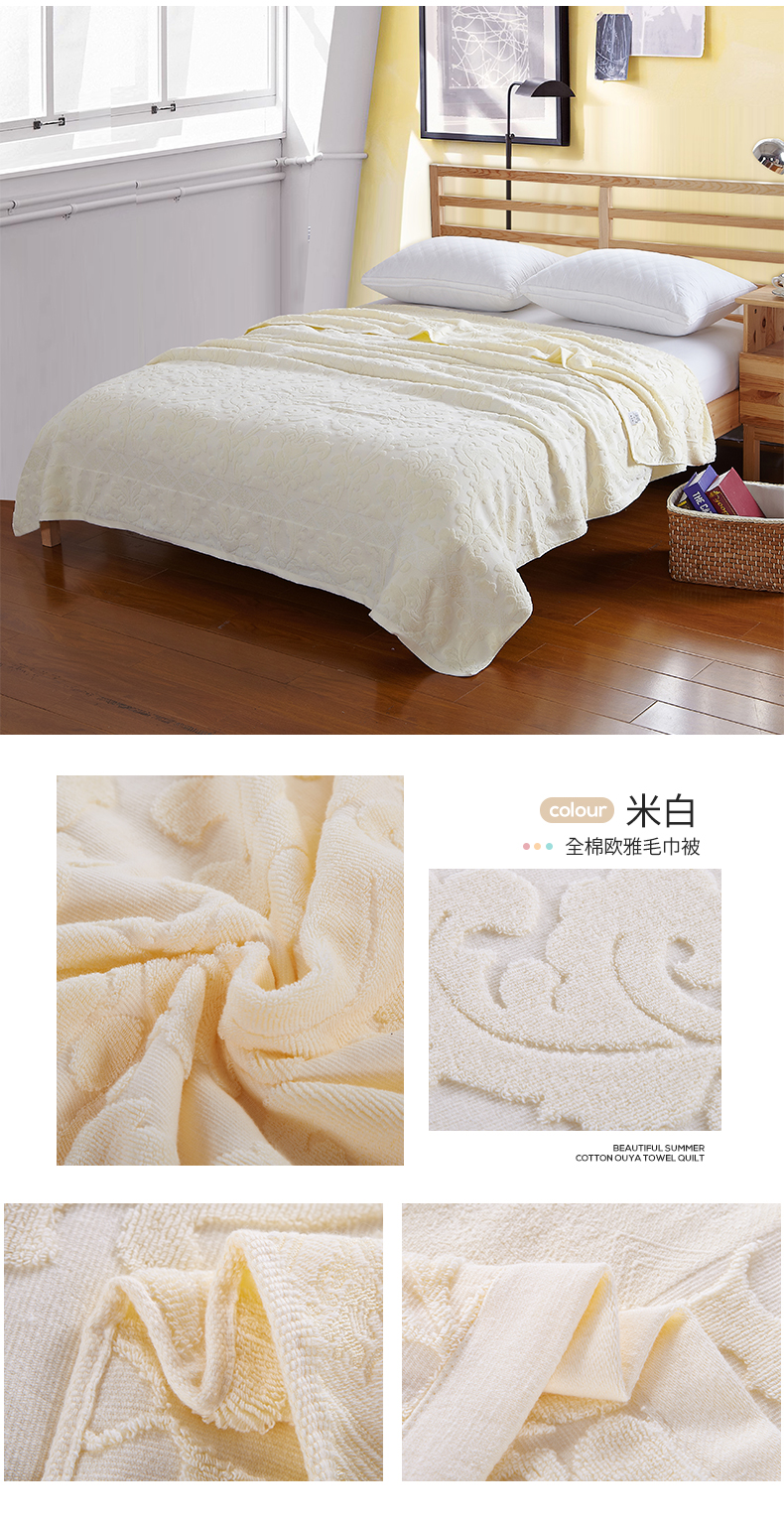 商品名称:雯雨家纺 2024老式怀旧A类纯棉毛巾被 欧典风尚-米白