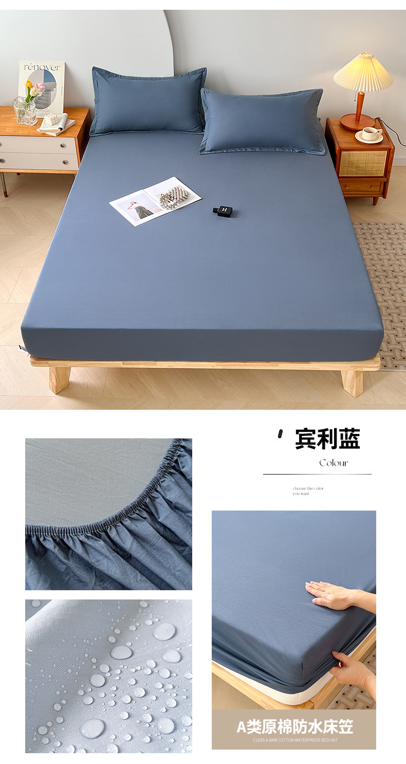 商品名称:曼陀罗 2025新款A类原棉防水床笠 宾利蓝