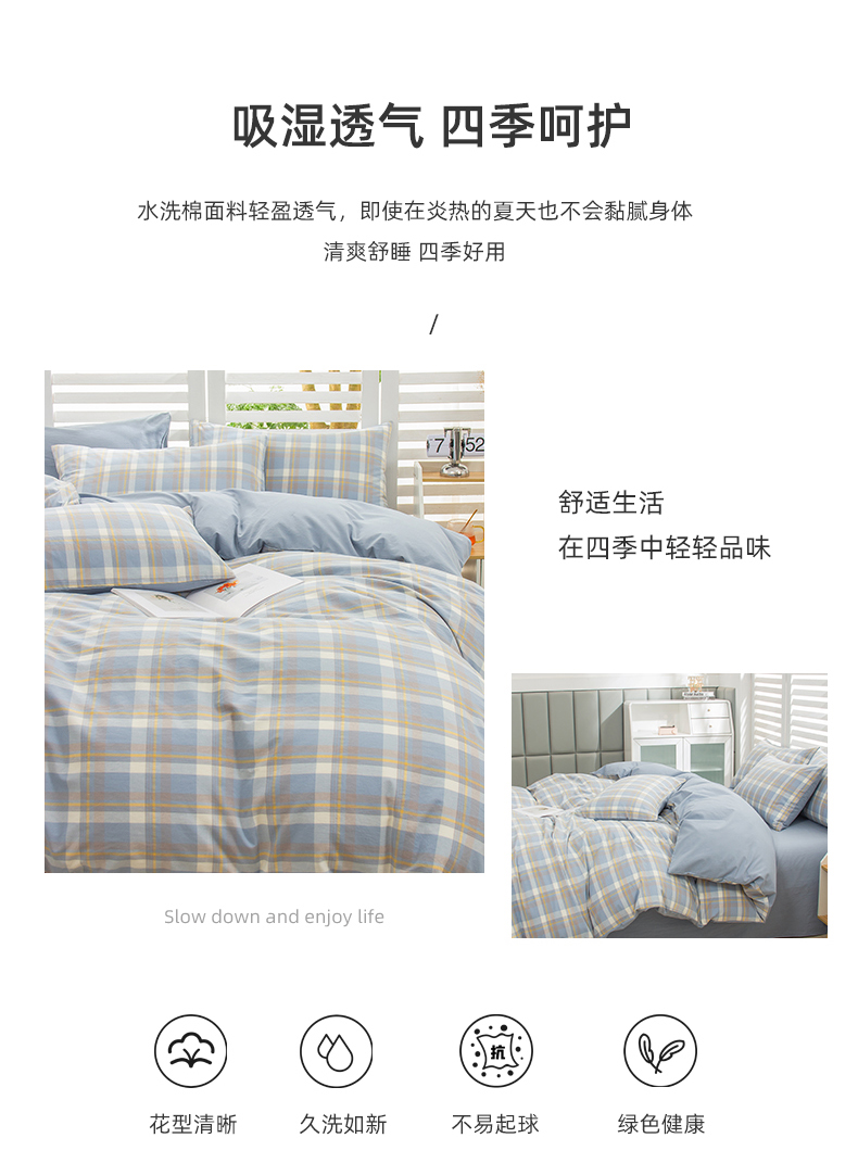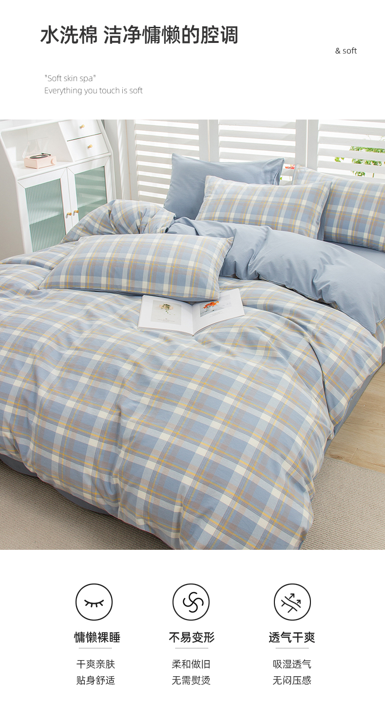 当前位置: 91家纺网 > 商品网购 > 床品套件 > 四件套 > 水洗棉四件套 > 柠萌家居 2024新款无印风A类全棉色织水洗棉四件套 简兮兰