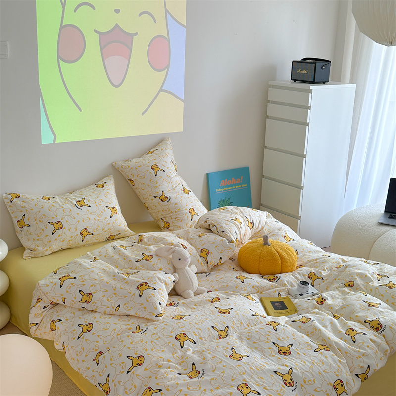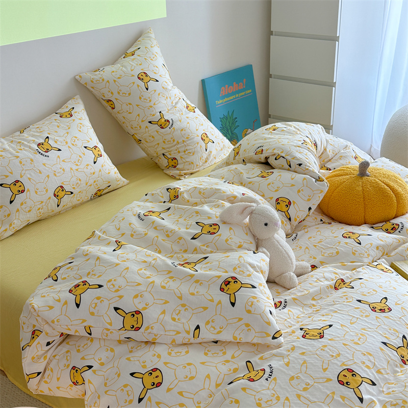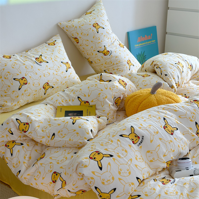 当前位置: 91家纺网 > 商品网购 > 床品套件 > 四件套 > 全棉普通四件套 > 时年 2024新款全棉双层纱四件套-宝可梦系列 皮卡丘精灵