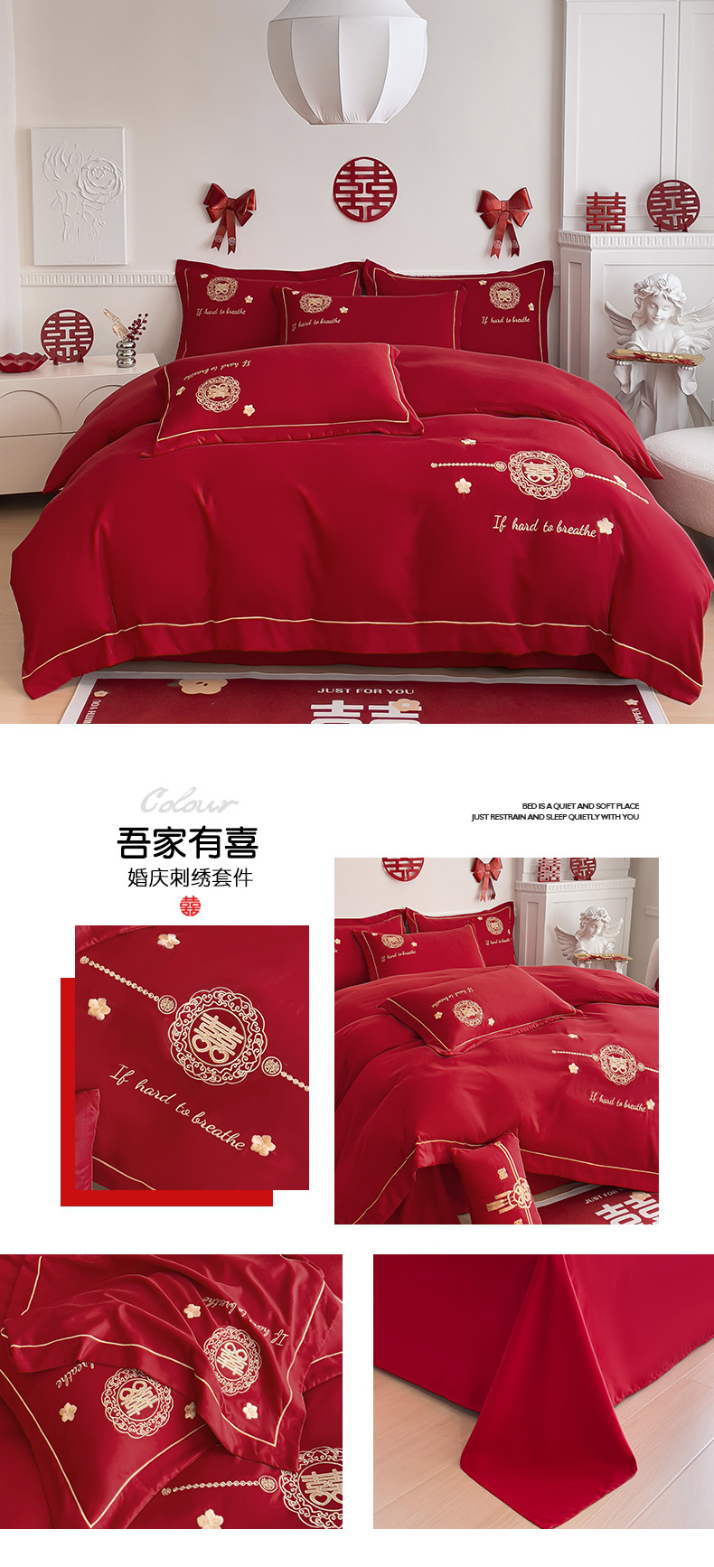 2024新款亲肤面料婚庆刺绣系列四件套 欢喜龙凤