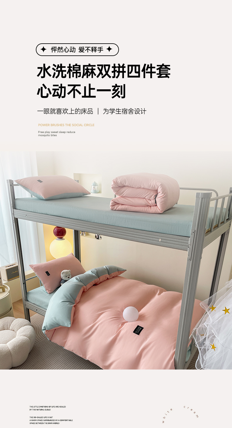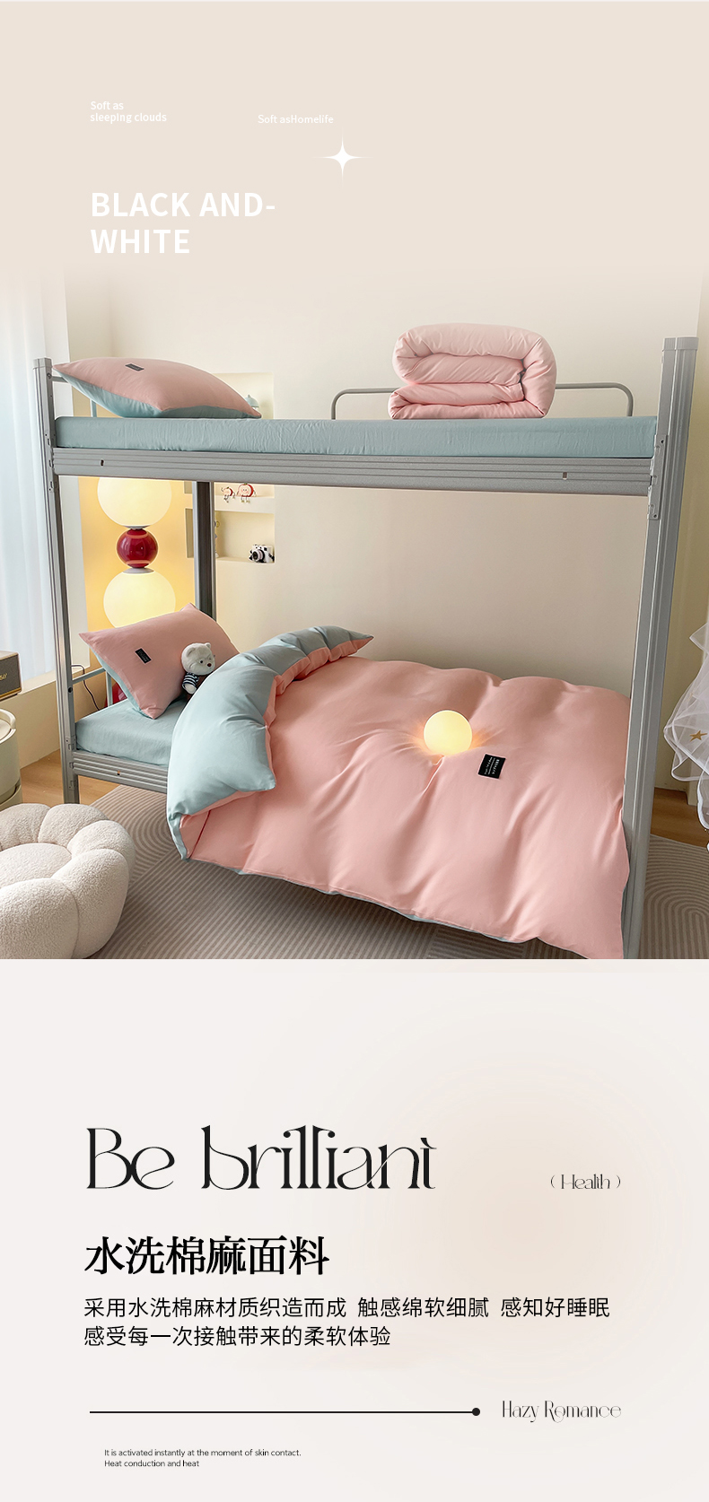 当前位置: 91家纺网 > 商品网购 > 床品套件 > 三件套 > 米瑞娜 2024新款水洗棉麻双拼纯色学生三件套 冰粉+自然绿