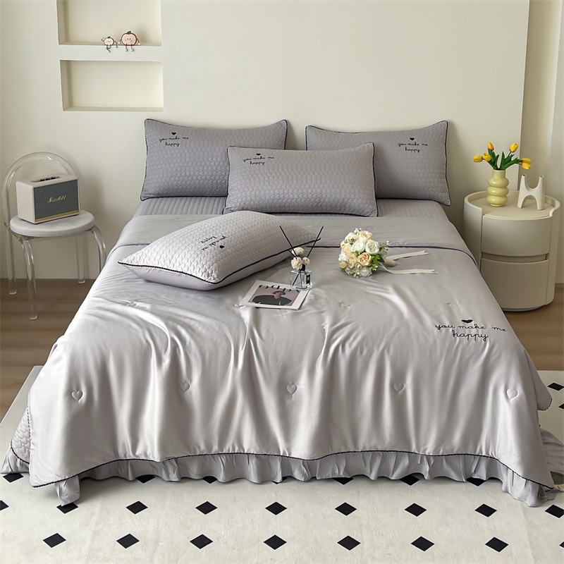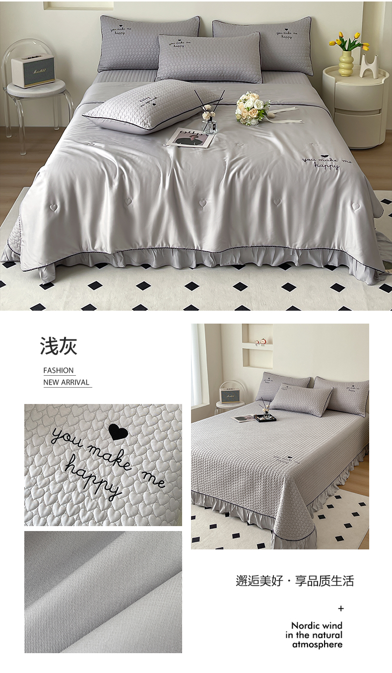 商品名称:OL家纺2024新款天丝夏被床盖三件套-爱恋 浅灰