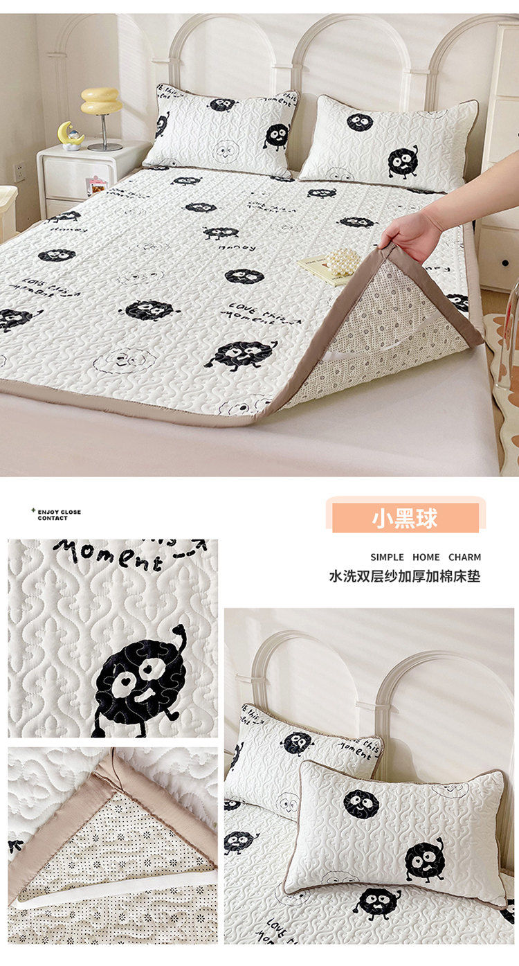 纽缦家纺 水洗双层纱加厚加棉床垫 小黑球