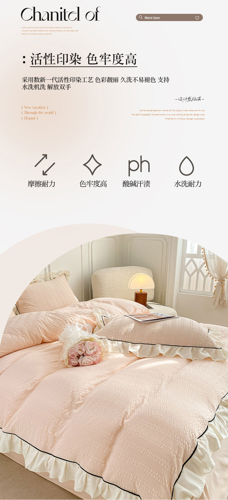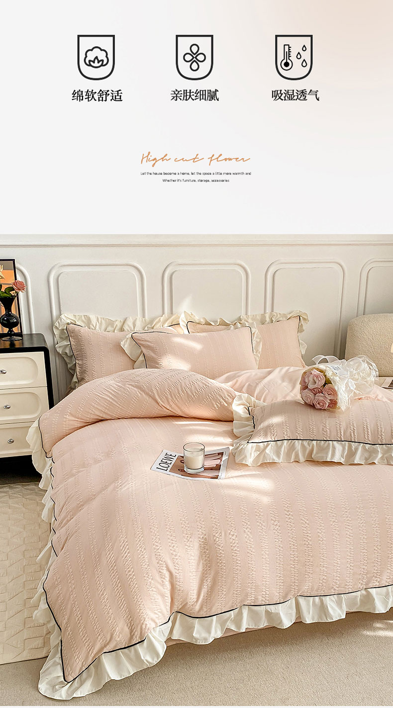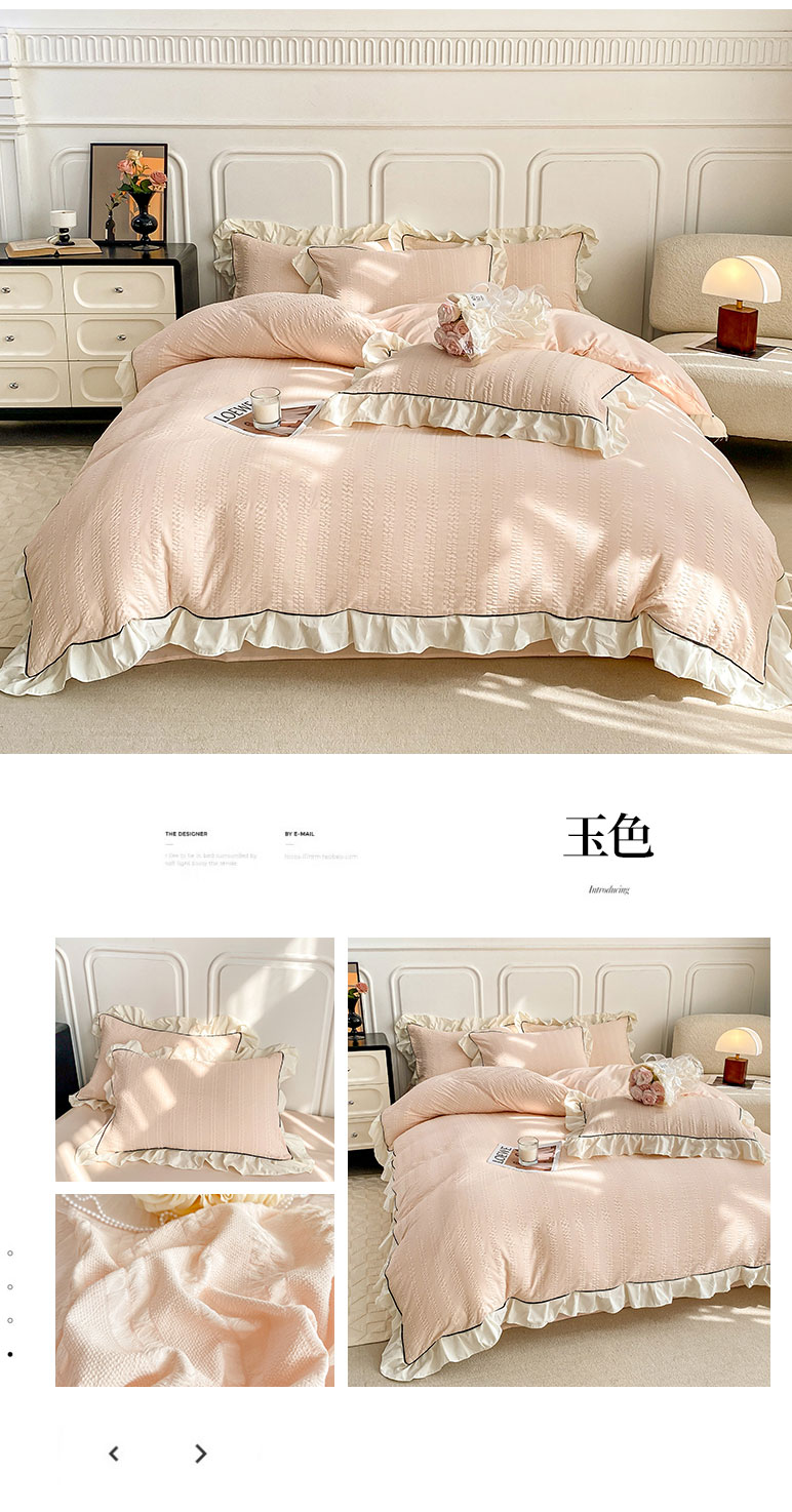 商品名称:大境 2024新款小提花韩版公主风小清新轻奢四件套三件套 玉色