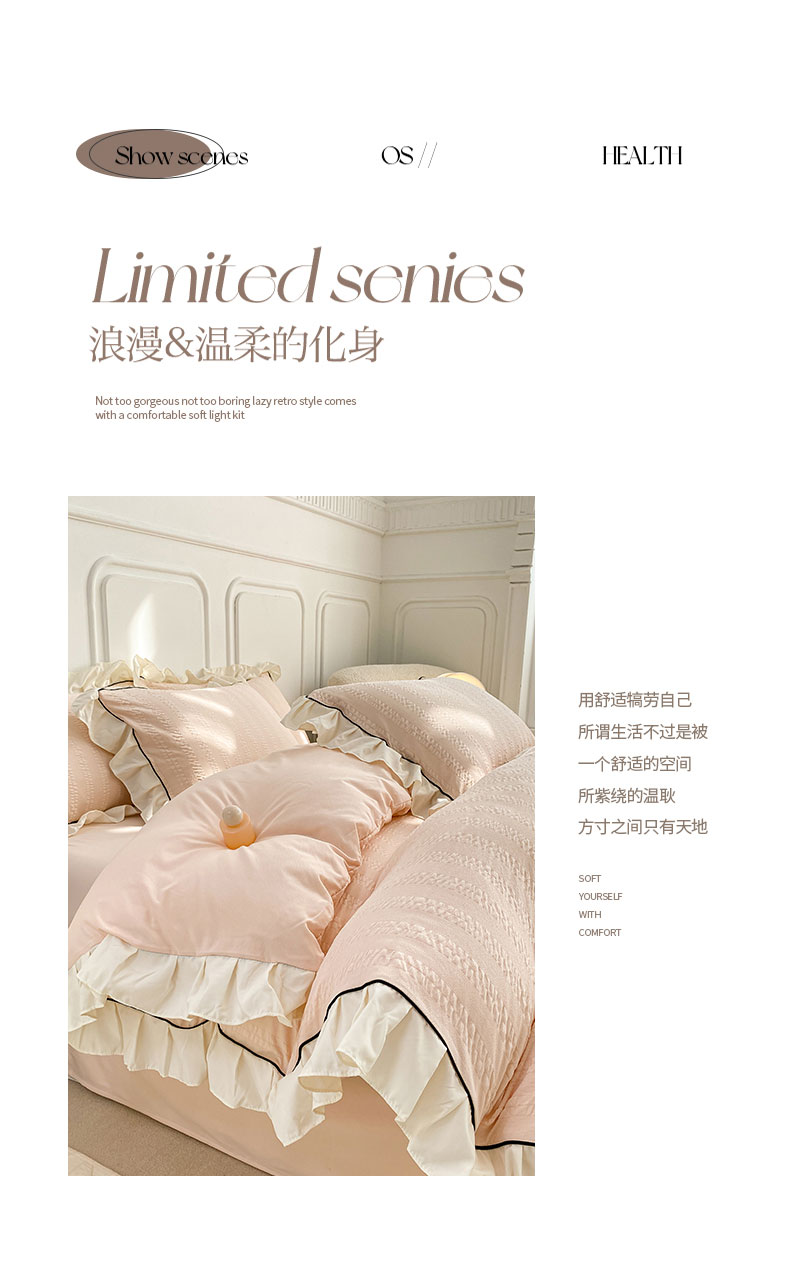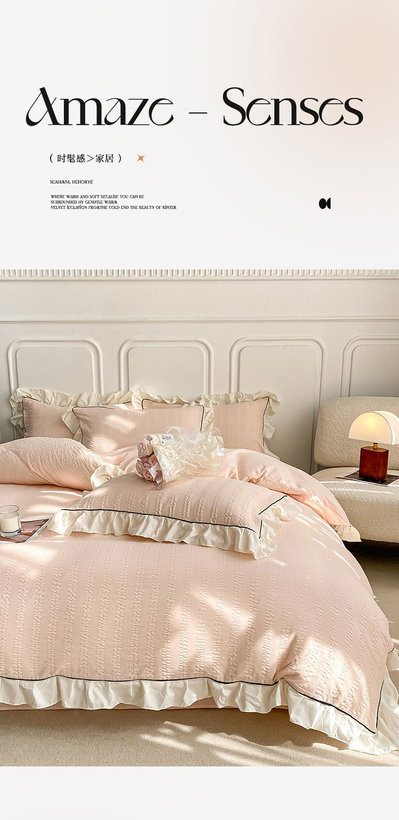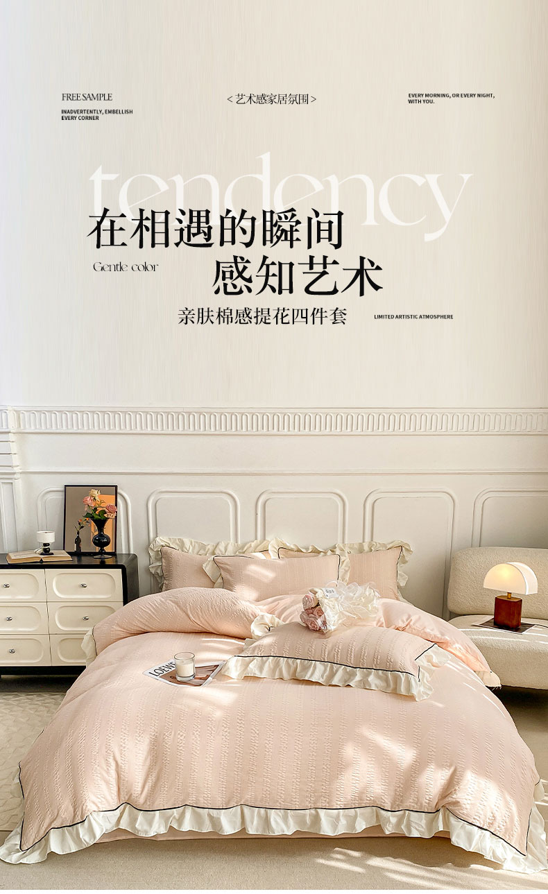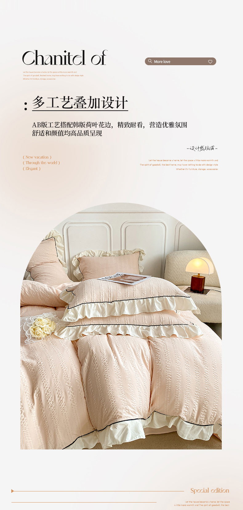 商品名称:大境 2024新款小提花韩版公主风小清新轻奢四件套三件套 玉色