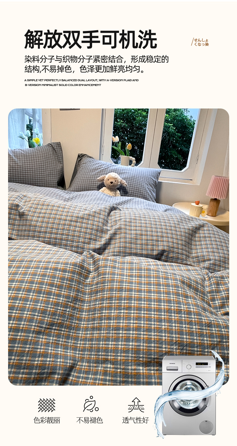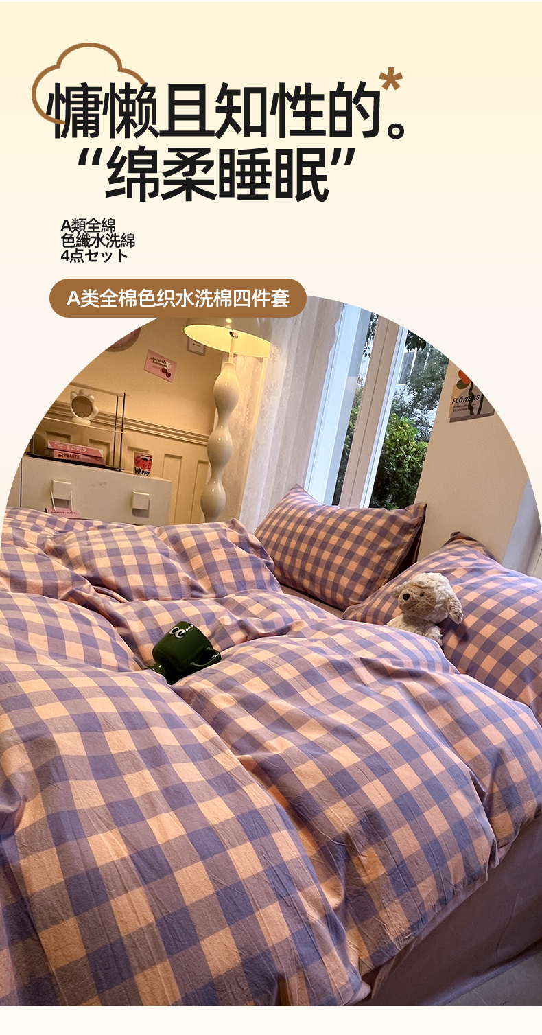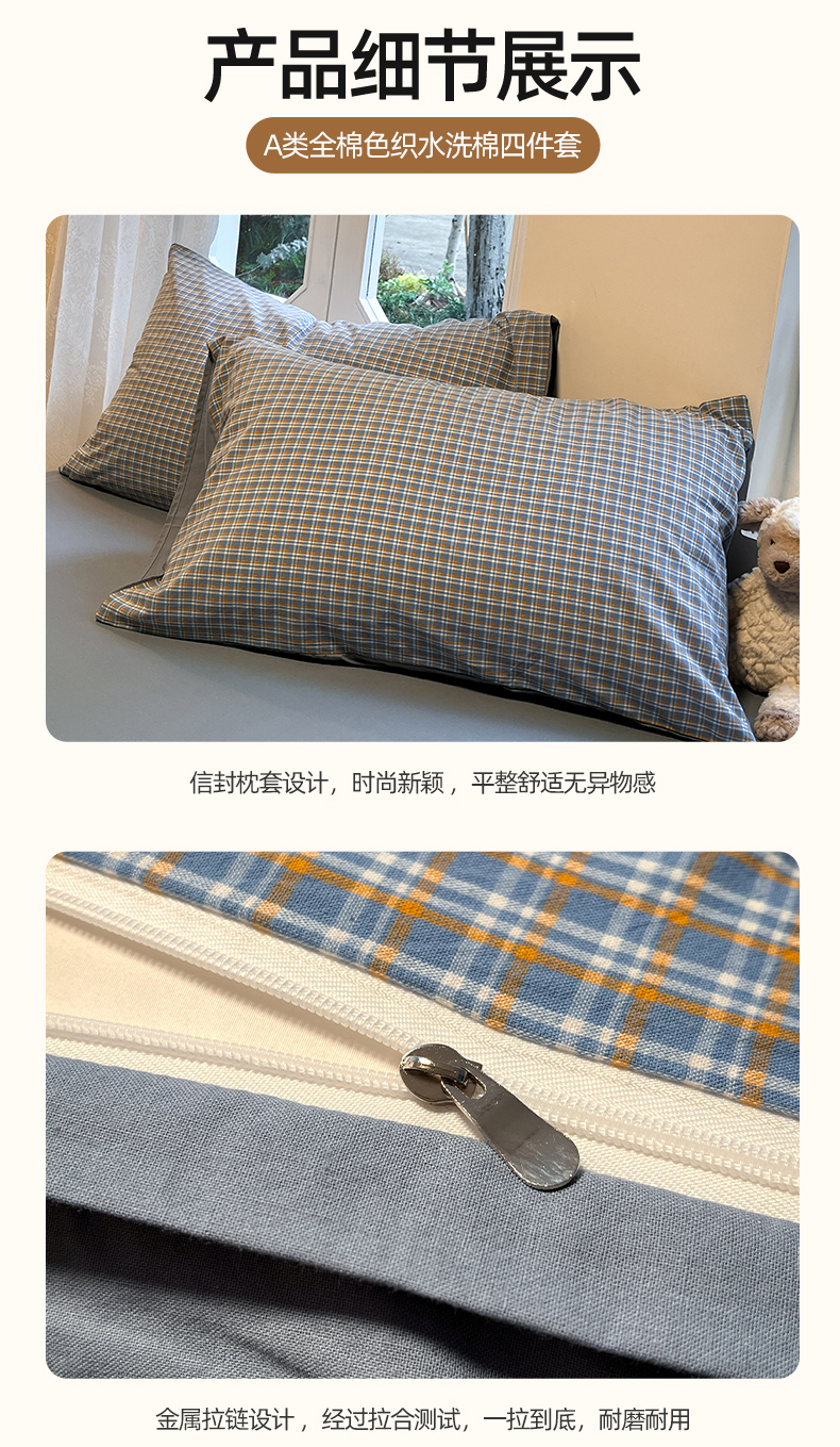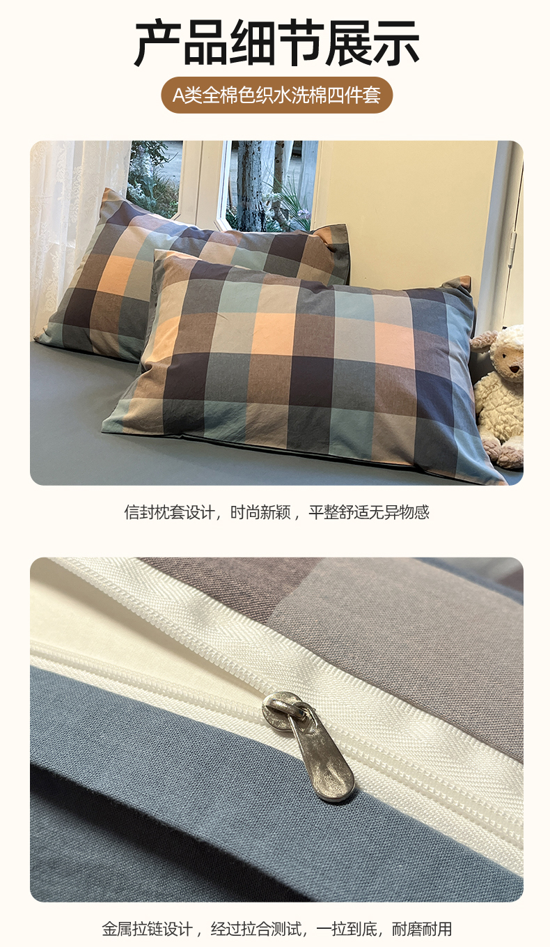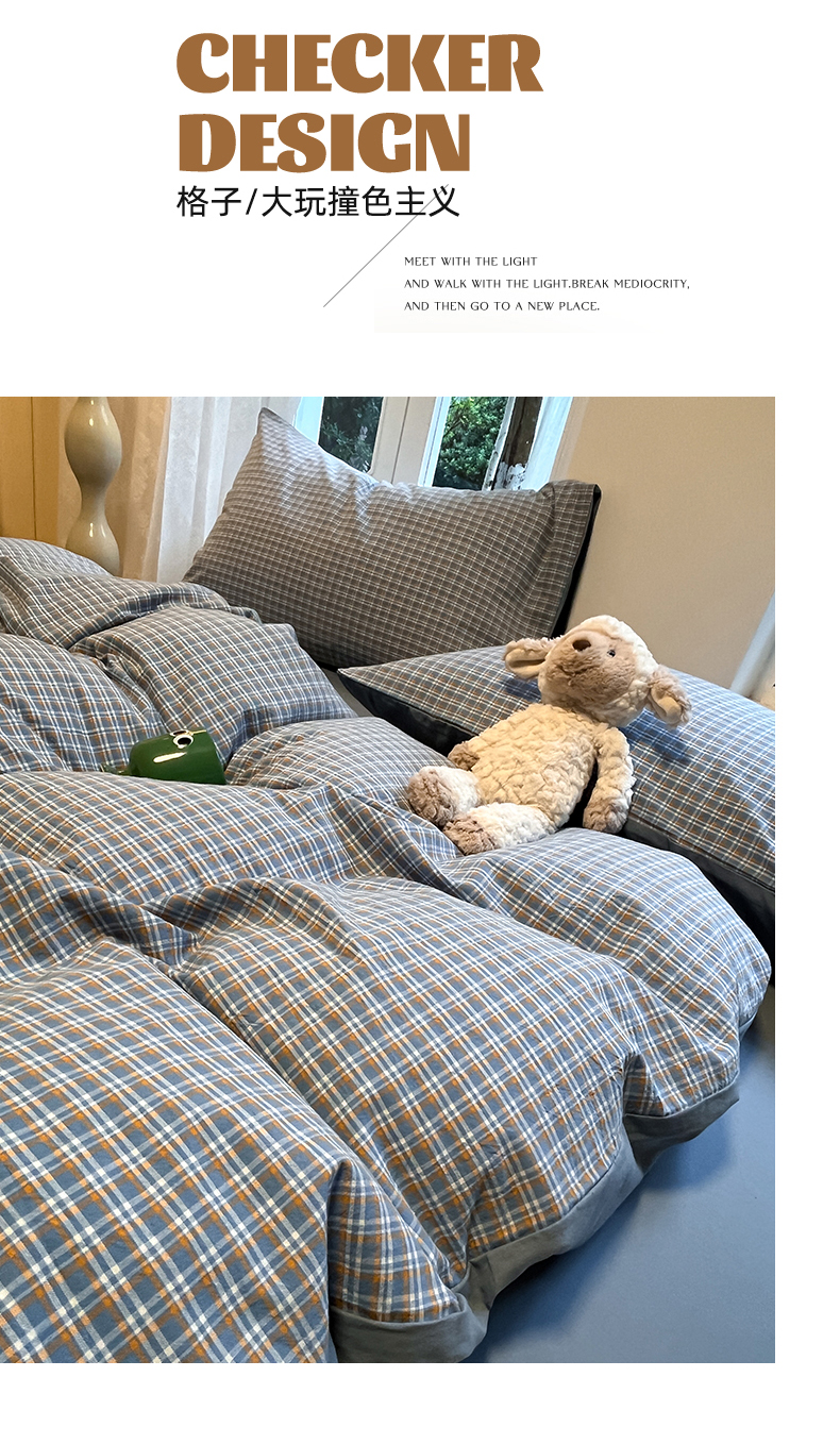 商品名称:(总)蓝邻家纺 2024新款全棉色织水洗棉四件套